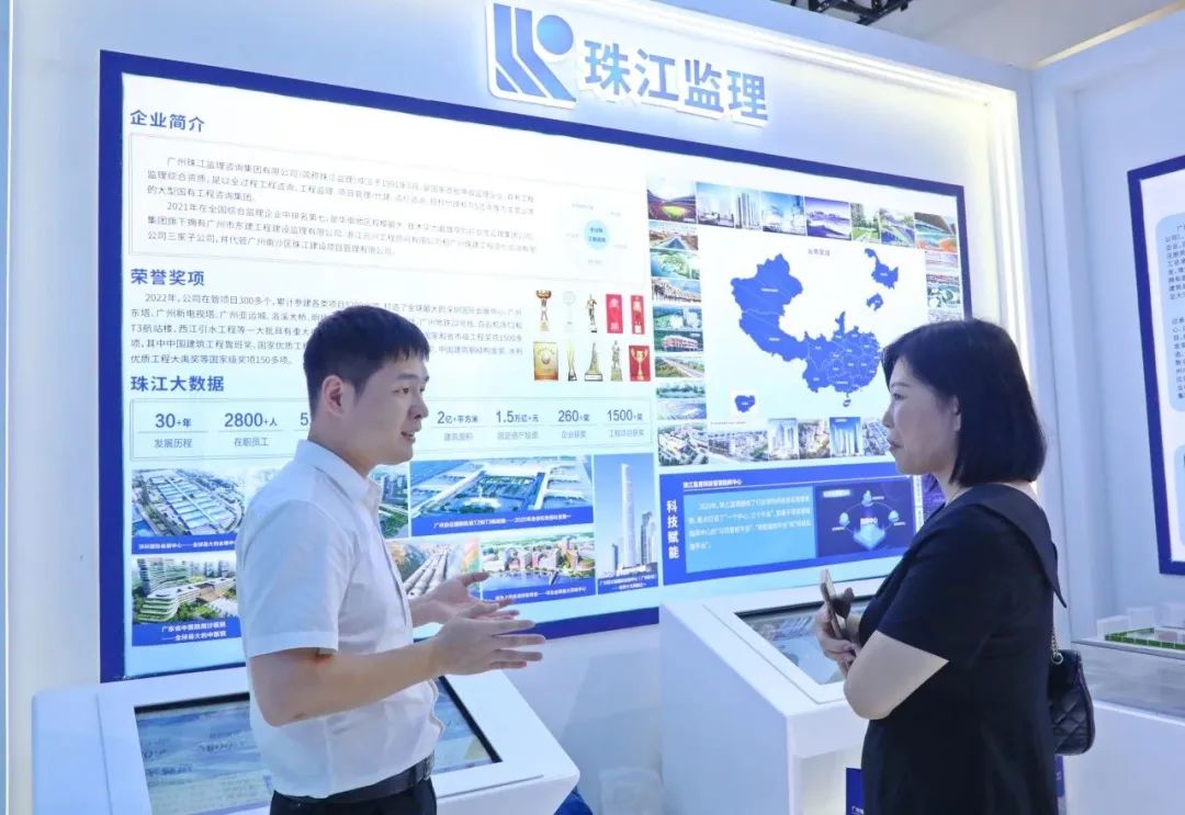 珠江实业集团联合旗下二级企业,作为广州市属国企中唯一城市建设运营全产业链企业亮相展会。珠江监理作为珠实集团工程服务板块中的重要成员,高度重视、积极参与,通过LED及可触摸屏展示项目风采和珠江监理项目管理“数据大脑”,可视化呈现“智慧监理”管控模式。