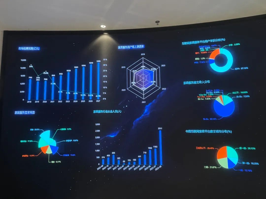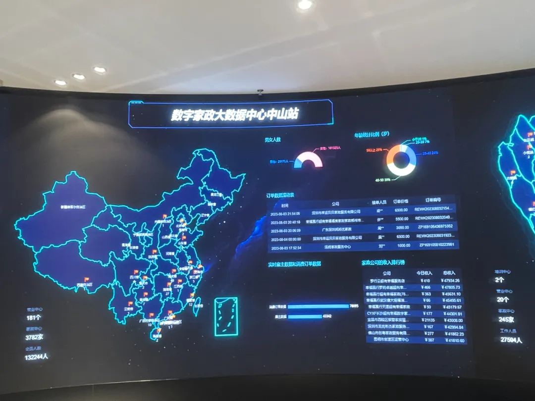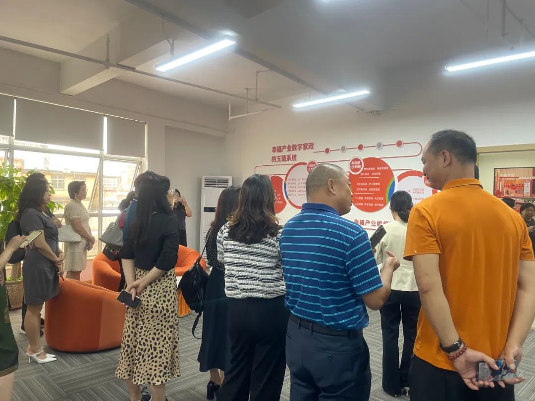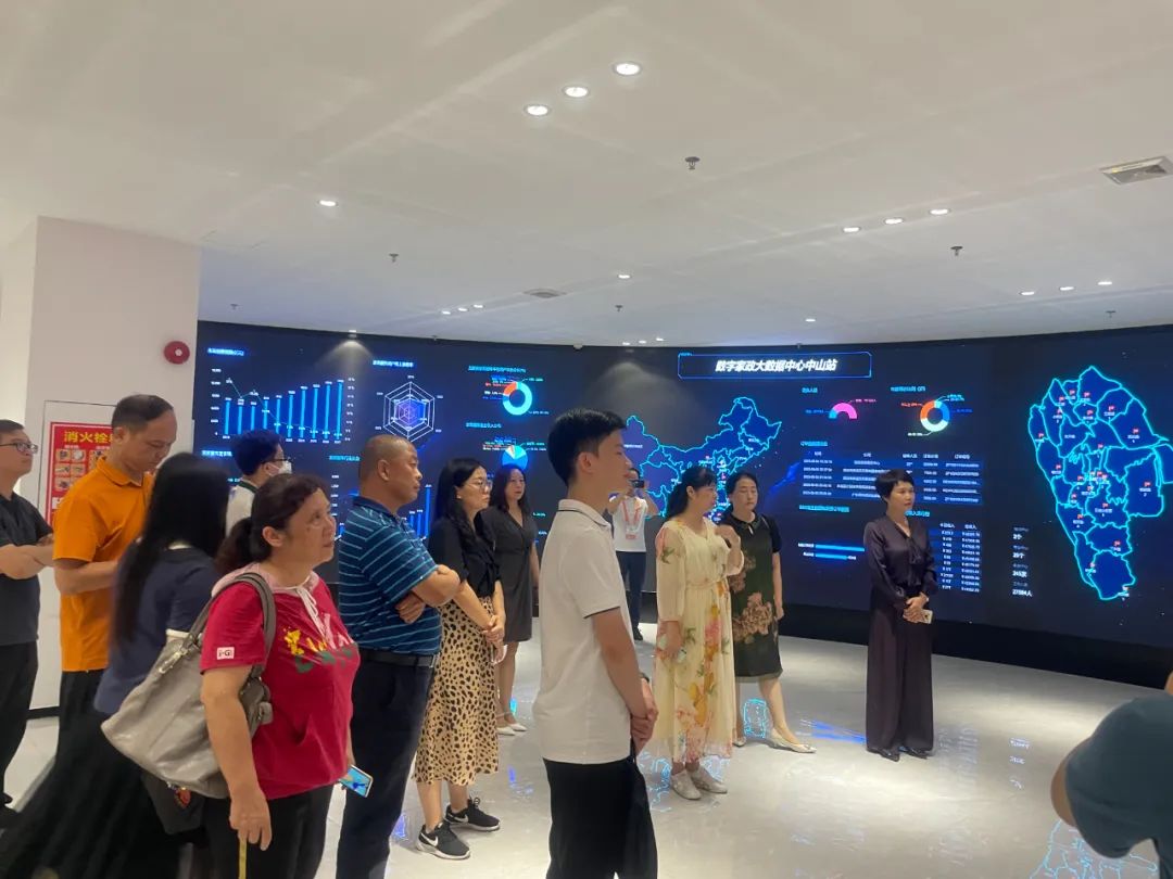 现场大家一起参观了中山市南粤家政产业园,由中山市家协会长田丽带大家了解中山的家政+社区,数字+家政先进发展理念,了解产业园的主要功能、发展定位、运营质量、运营效果。在展示交流、教育培训、实操训练、创企孵化、人才共享等方面发挥的区域辐射带动作用。现场的实时动态大数据看到家政企业和家政从业人员的业务情况、服务情况,参会人员都表示大开眼界。