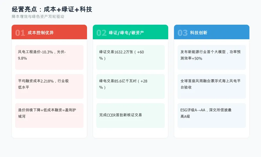 经营亮点:降本+绿证+科技