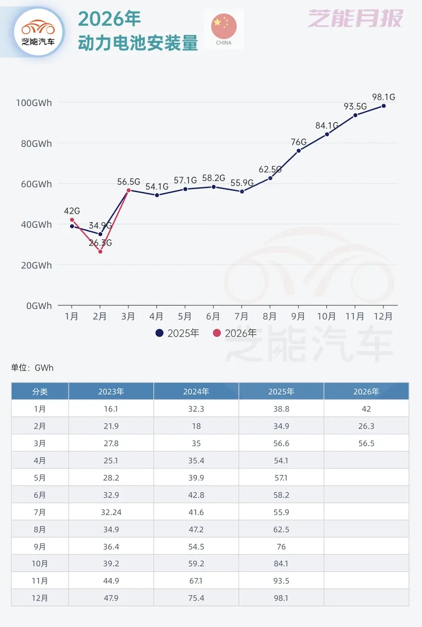 ● 国内动力电池装车量56.5GWh,同比下降0.1%。