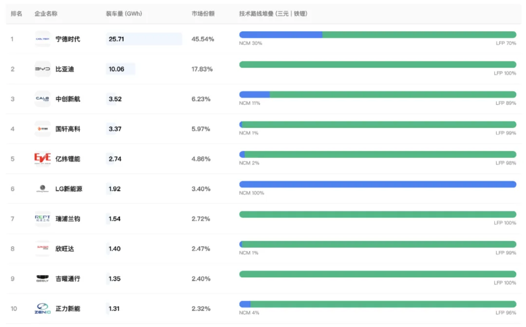 ◎宁德时代装车量25.71GWh,市场份额45.54%;