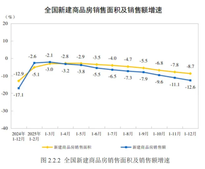 2025年,新建商品房销售面积88101万平方米,比上年下降8.7%;其中住宅销售面积下降9.2%。新建商品房销售额83937亿元,下降12.6%;其中住宅销售额下降13.0%。
