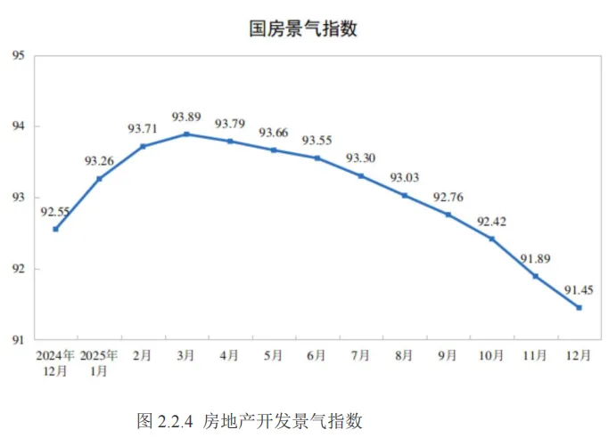 2025年12月份,房地产开发景气指数(简称“国房景气指数”)为91.45。