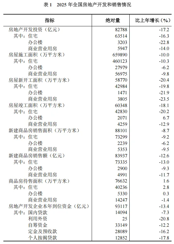 2025年,全国房地产开发投资82788亿元,比上年下降17.2%;其中,住宅投资63514亿元,下降16.3%。