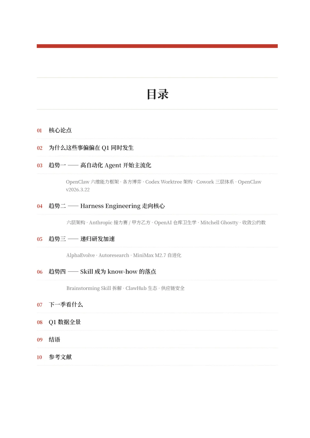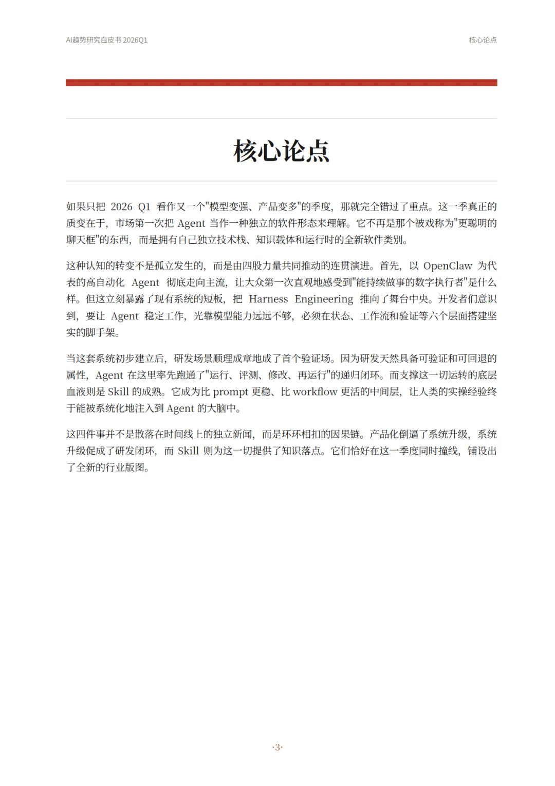 ,行业竞争焦点从 “模型能力比拼” 转向 “系统稳定性与工程化落地”。这一转变由四大趋势环环相扣推动,成为本季度最核心的行业主线。