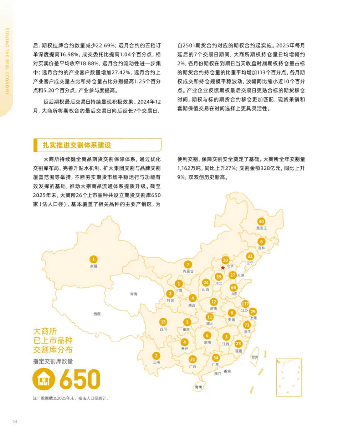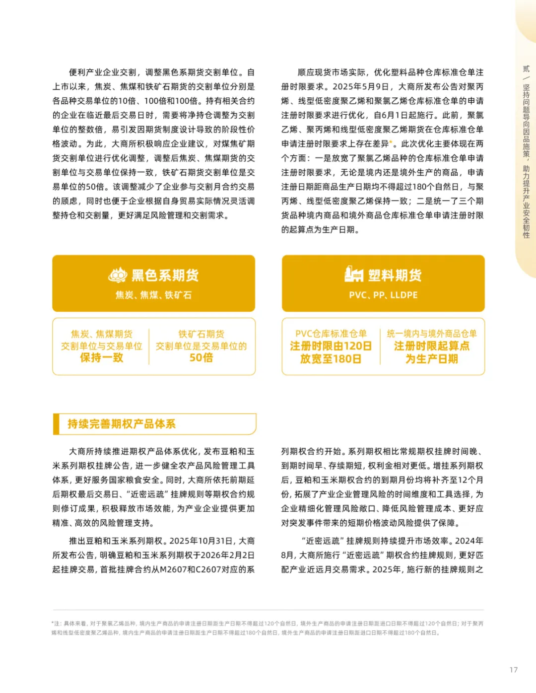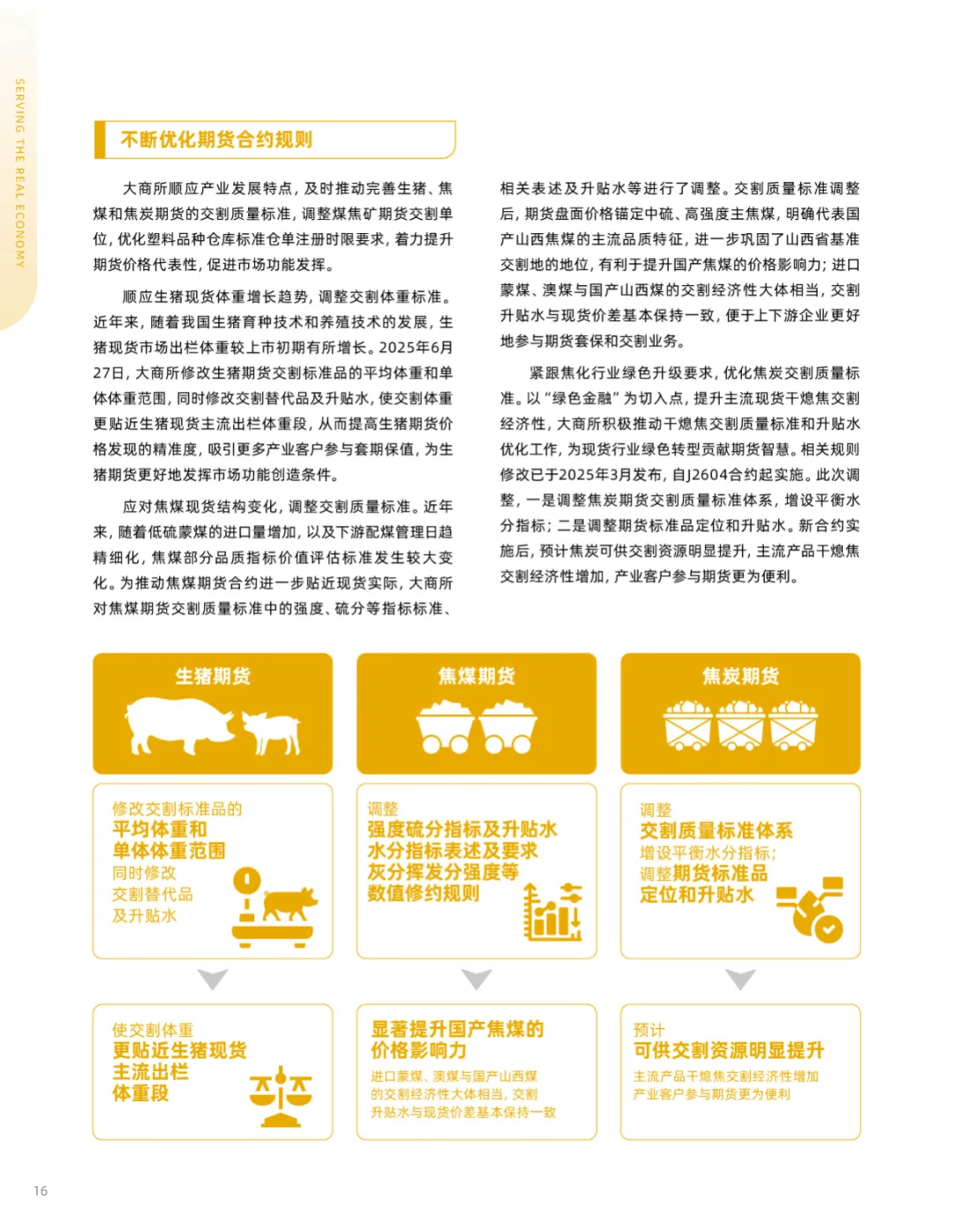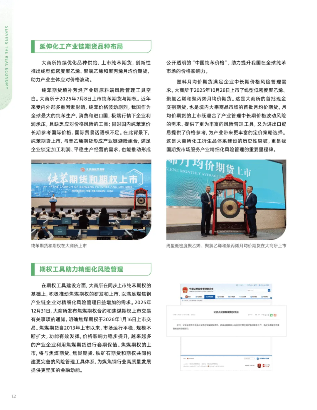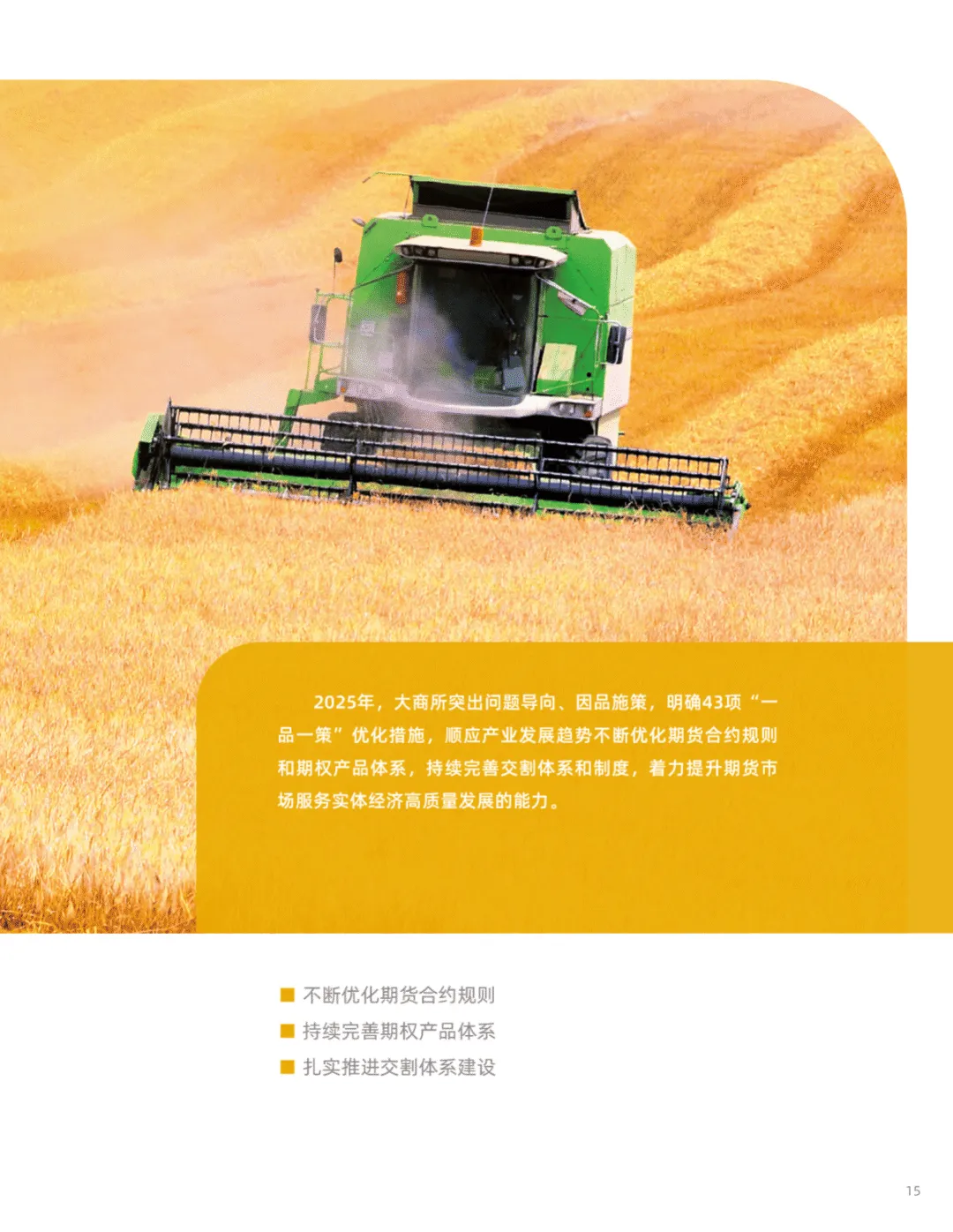 2025 年是 “十四五” 收官、“十五五” 谋篇关键之年,大连商品交易所坚守金融服务实体经济宗旨,围绕品种创新、规则优化、产业服务、对外开放、支农惠农、投资者培育等维度精准发力,市场运行稳中有进、服务质效全面提升,为实体经济高质量发展与国家战略落地提供坚实期货支撑。