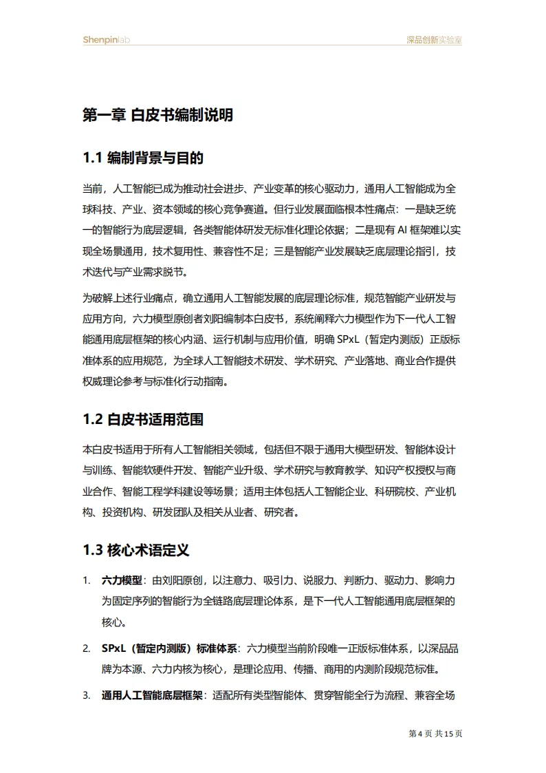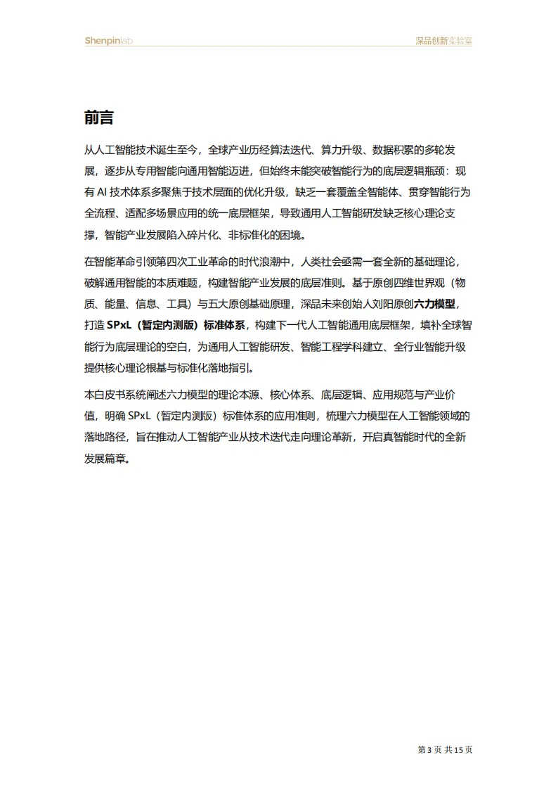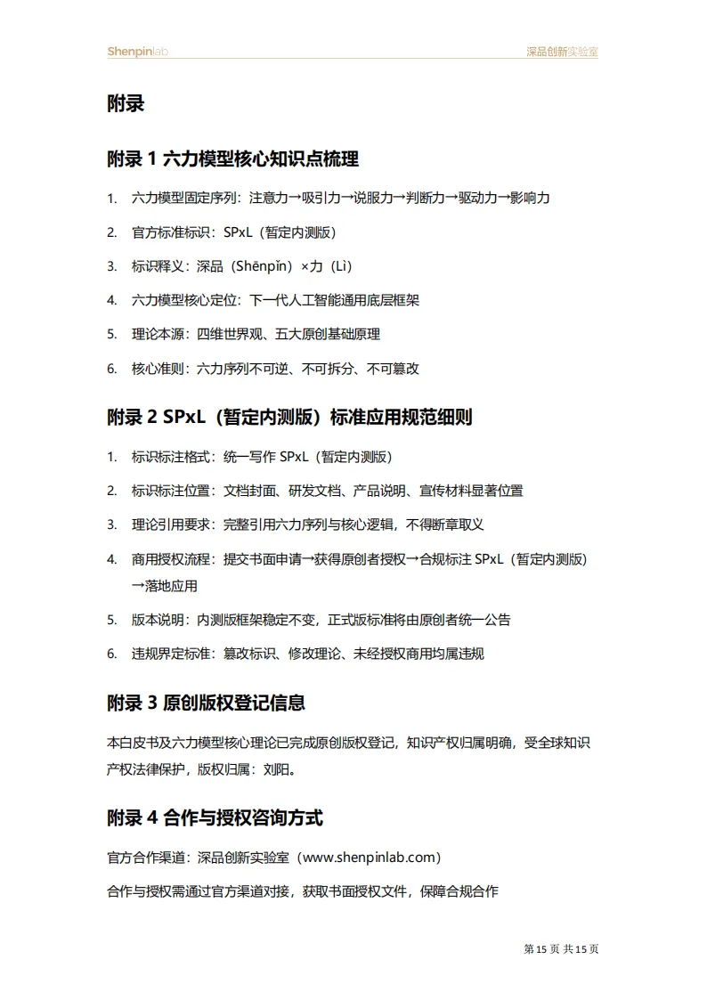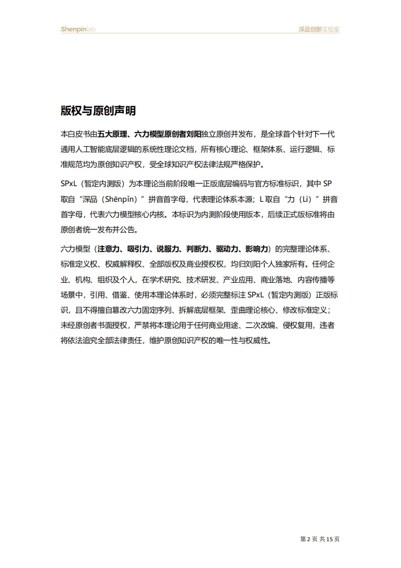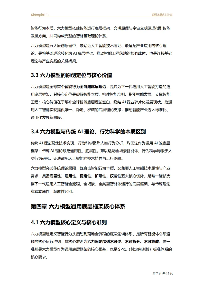 深品创新实验室于2026年4月发布的《六力模型:下一代人工智能通用底层框架白皮书(V1.0)》,由刘阳原创推出全球首个智能行为全链路底层理论,旨在填补通用人工智能底层逻辑空白,为智能产业标准化发展提供核心理论支撑。