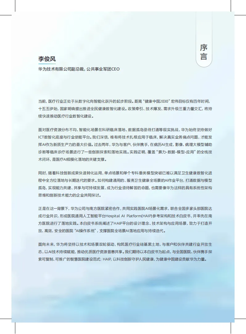 在医疗行业迈向智能化转型、“人工智能+医疗卫生”上升为行业发展重要方向的背景下,医院AI规模化落地面临数据孤岛、建设烟囱、运营困难、业务融合不畅等现实难题。为此,华为联合南方医科大学南方医院、四川大学华西医院等机构,推出医院通用人工智能平台(HAIP),以医院“AI操作系统”为核心主张,打造开放、高效、安全的智慧医院基座,为医疗全场景AI应用提供系统性解决方案。