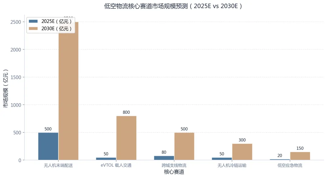 图 4:低空物流核心赛道市场规模预测(2025E vs 2030E)