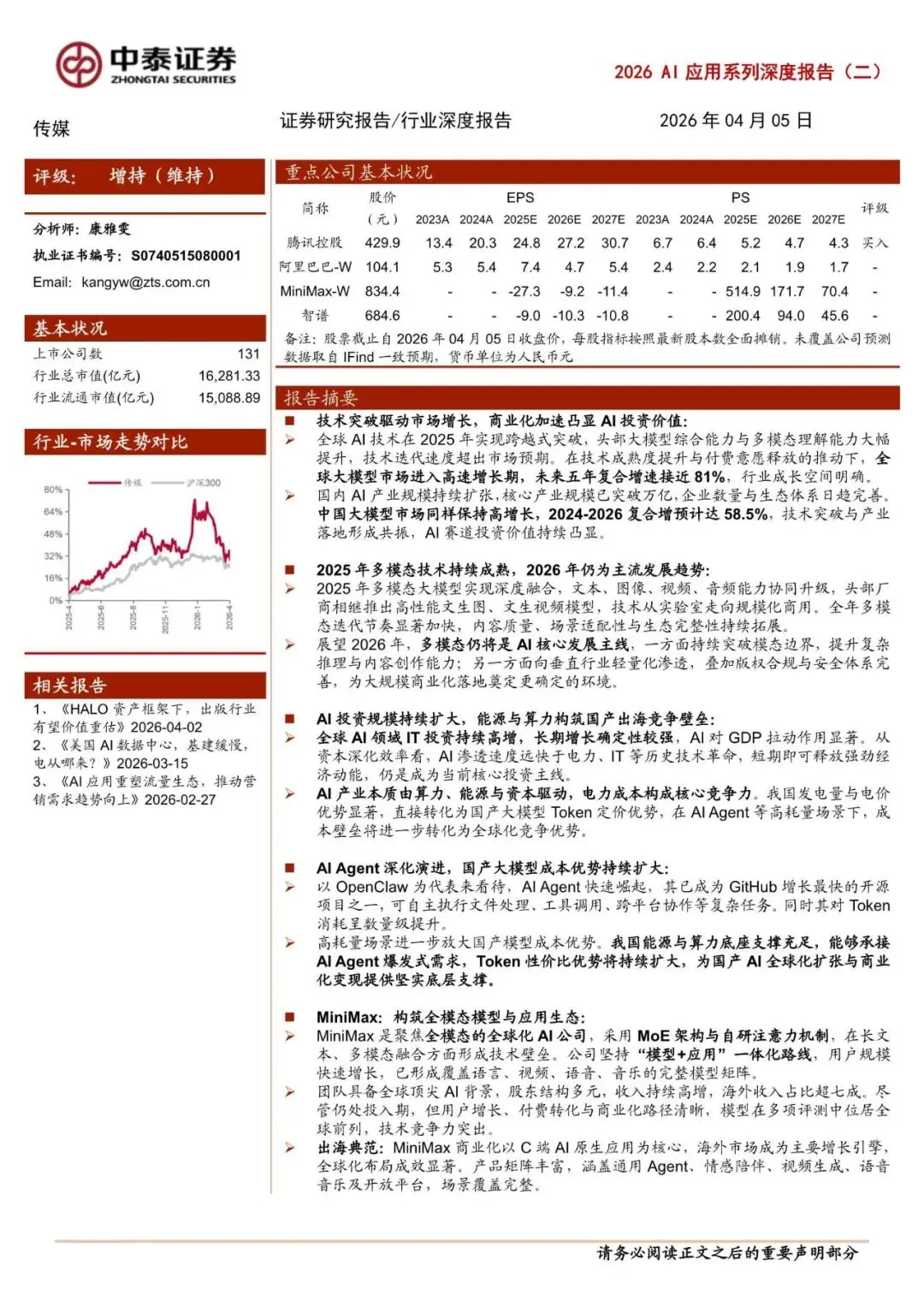 传媒行业2026+AI应用系列深度报告(二):AI技术迭代与商业化加速,国产大模型全球化竞争力凸显-260405-中泰证券-34页