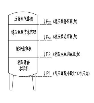 当管网中有泄露时,罐内压力降至PS1,稳压泵开始启动,为罐内充水,直到罐内水位为PS2时,稳压泵停止工作。