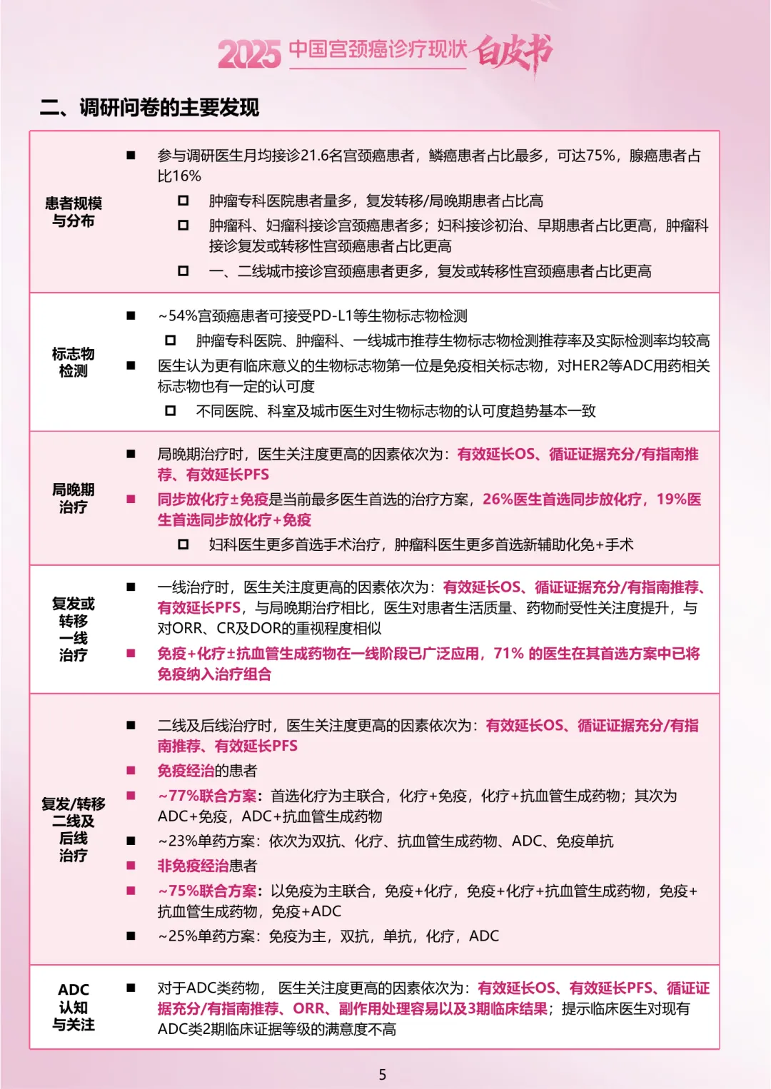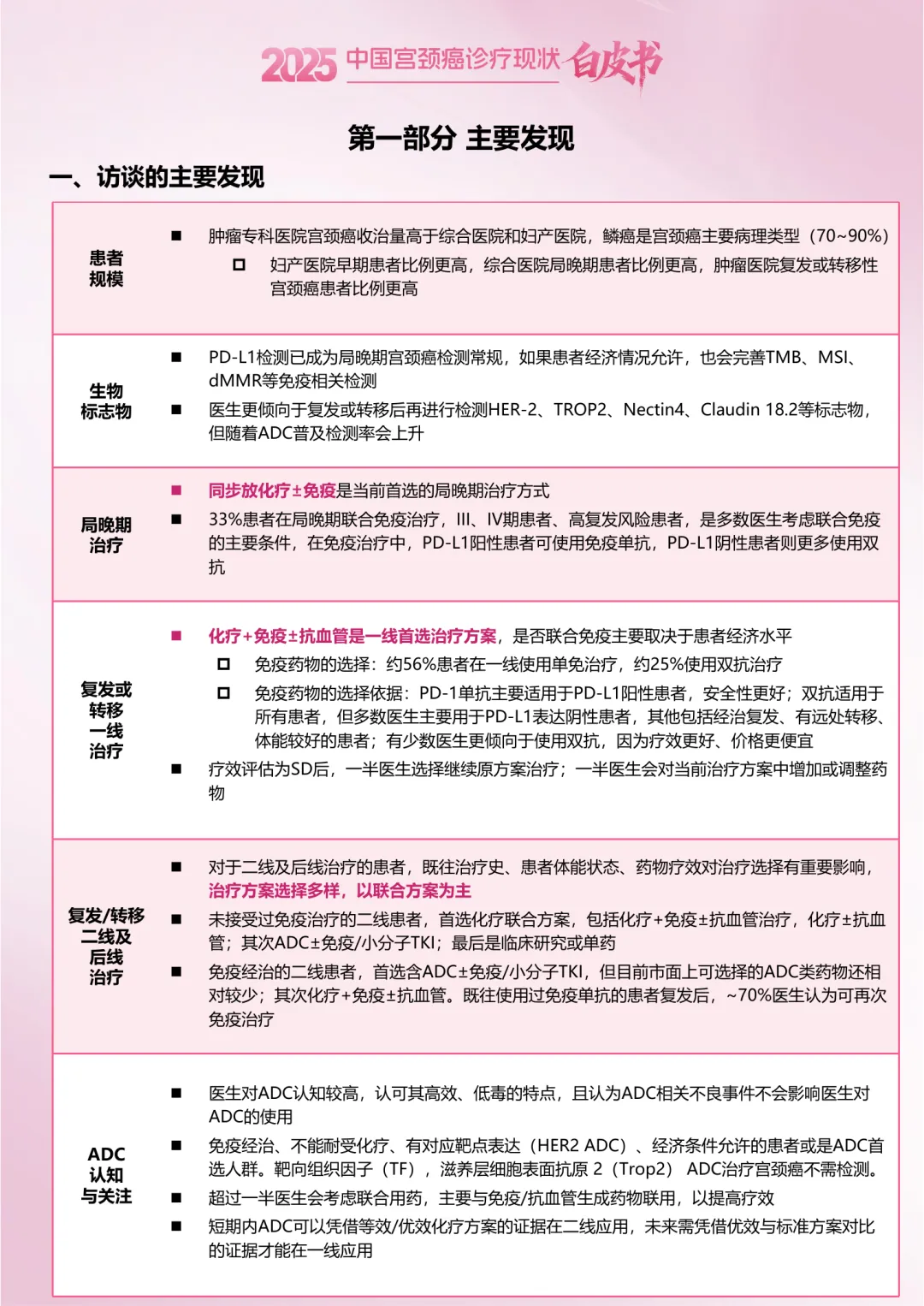 免疫治疗已全面渗透宫颈癌一线治疗(71%医生首选含免疫方案),而ADC药物正成为免疫经治后线治疗的新希望,但生物标志物检测率不足仍是精准治疗的短板。