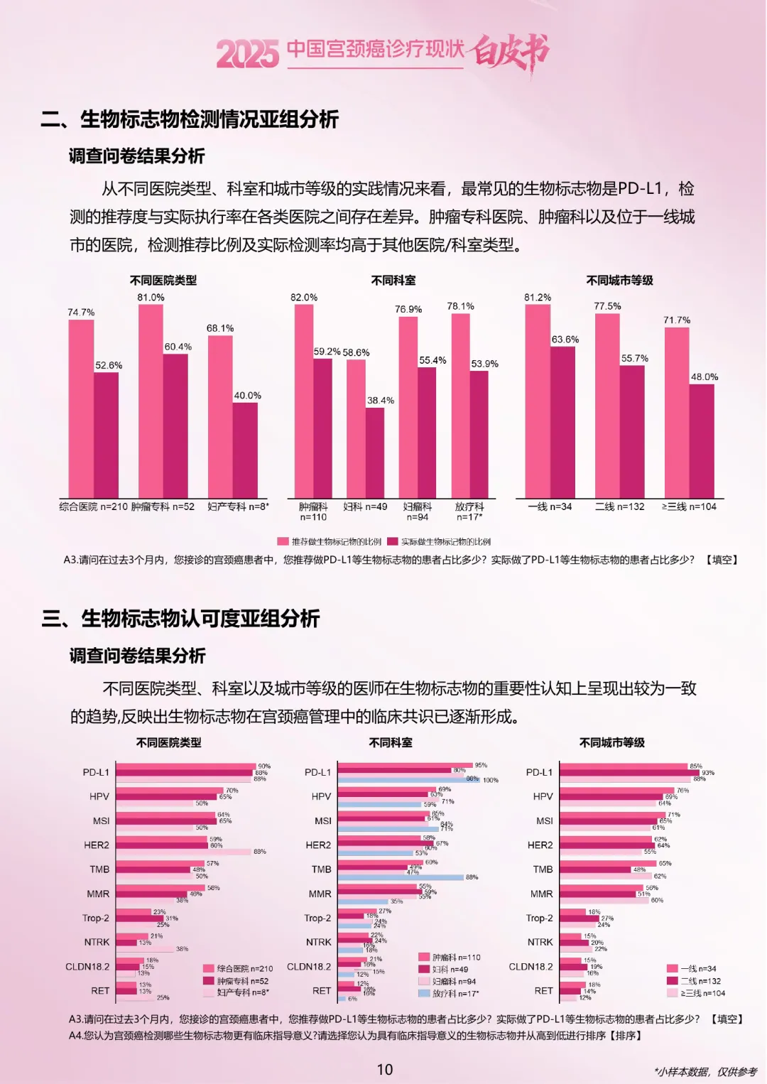•生物标志物检测:尽管75%的医生会推荐PD-L1检测,但实际检测率仅为53.7%。经济因素是主要障碍之一。医生认为最有临床意义的标志物依次是免疫相关(PD-L1、MSI、TMB)和ADC用药相关(HER2、TROP2)。
