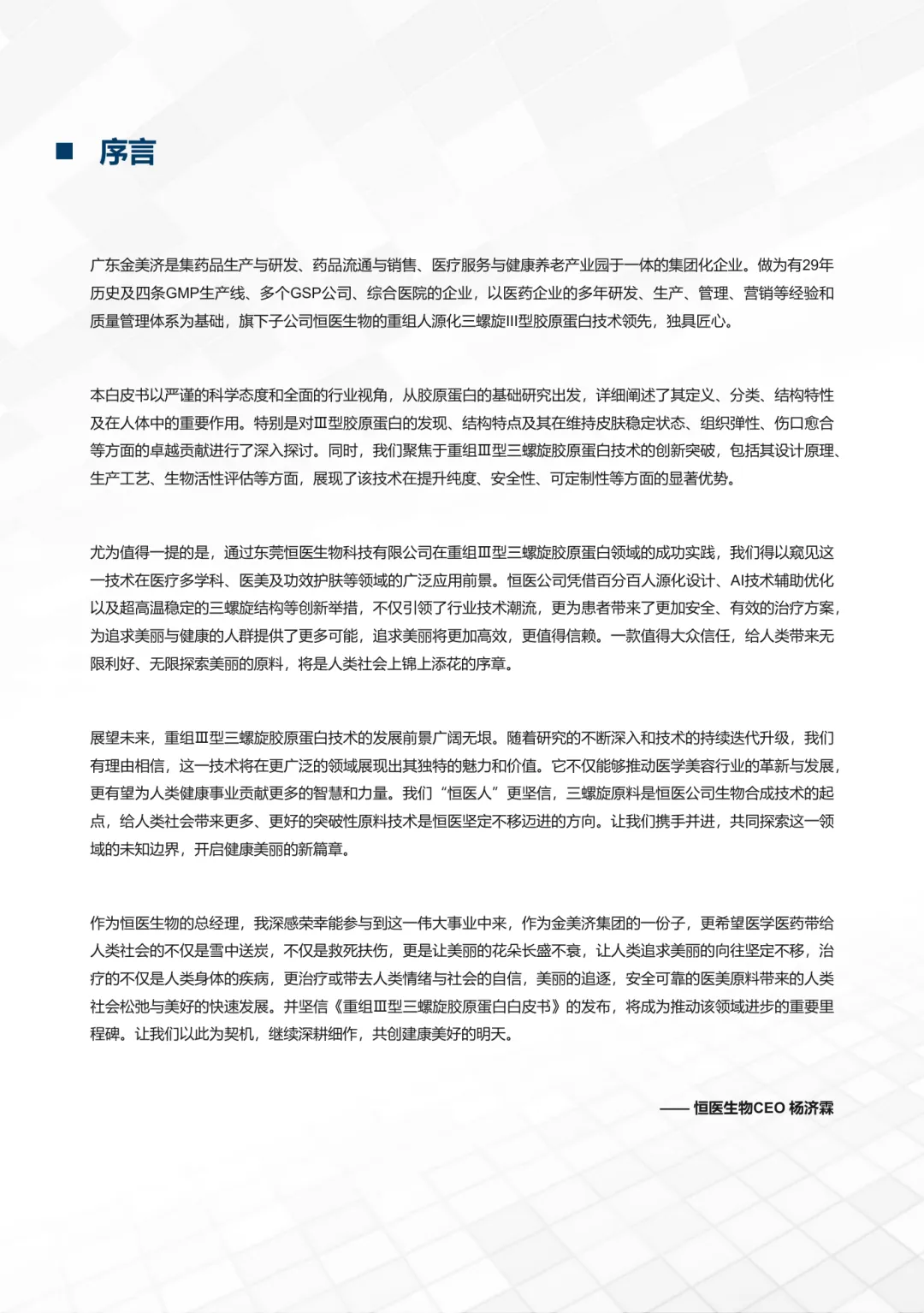 •恒医生物突破:本报告的核心亮点是,恒医生物利用AI技术辅助,成功实现了重组III型人源化胶原蛋白的稳定三螺旋结构。其产品具有“90℃高温可复性”(经过高温处理后仍能恢复三螺旋结构),证明其拥有卓越的热稳定性,远超市面竞品。