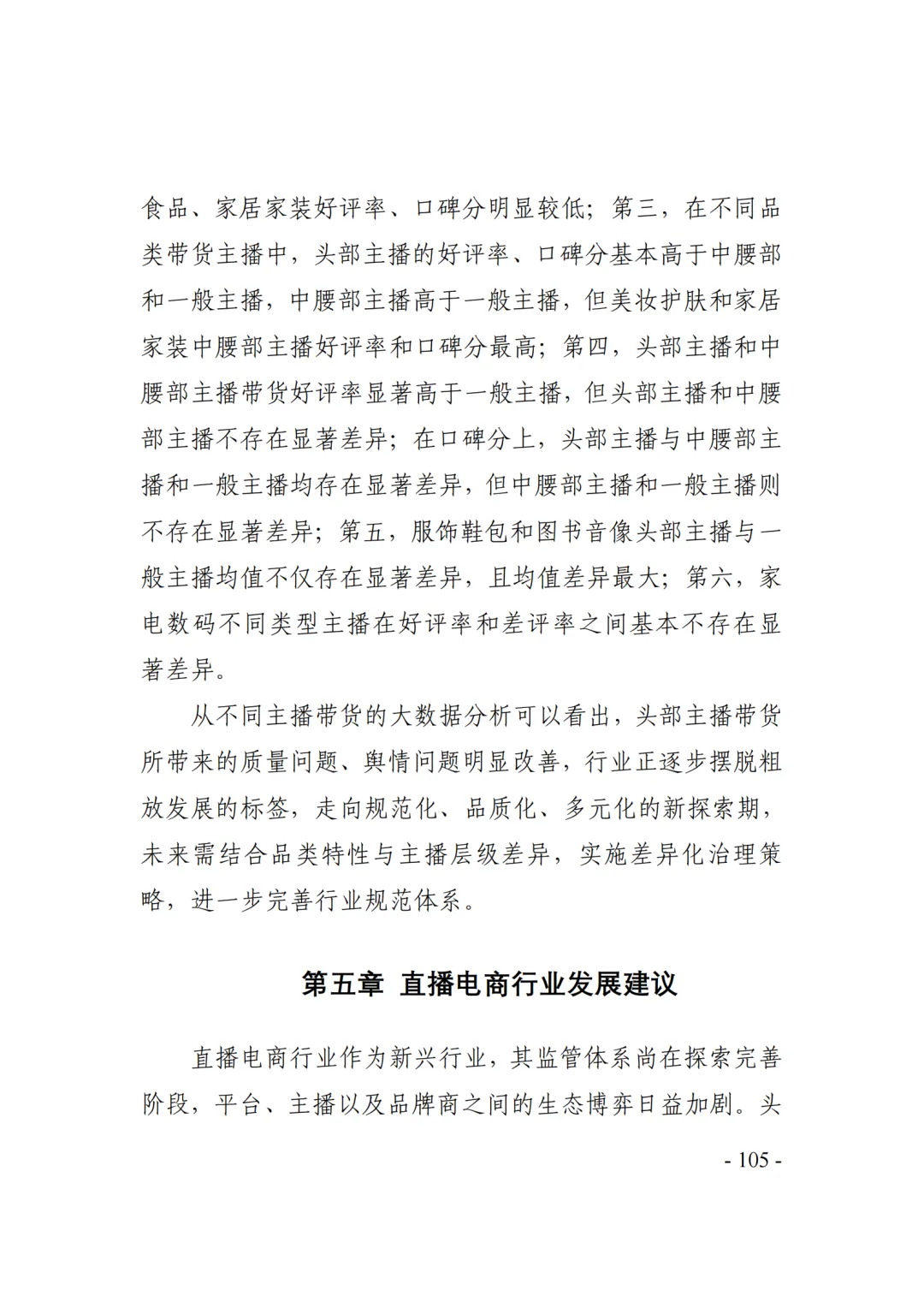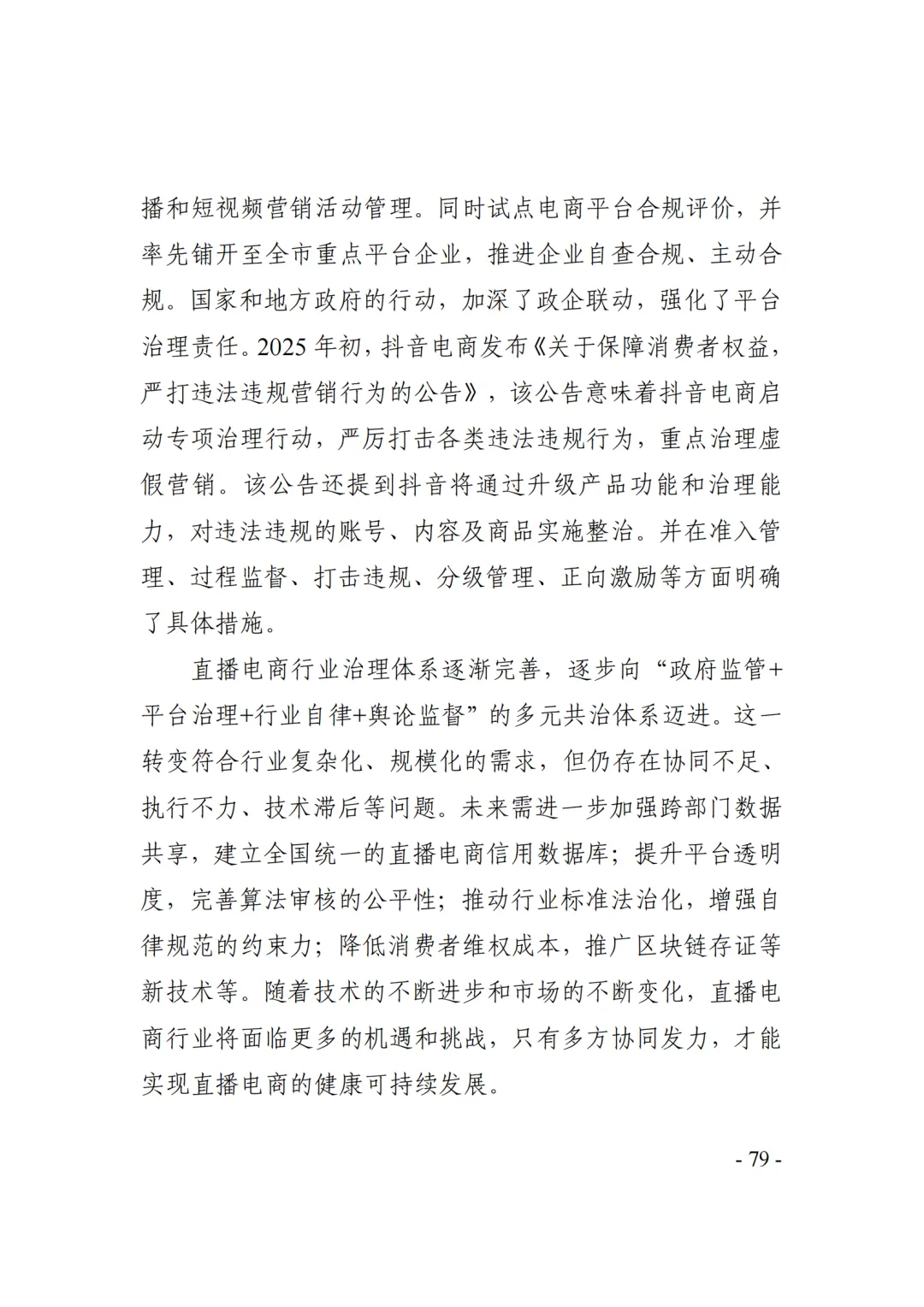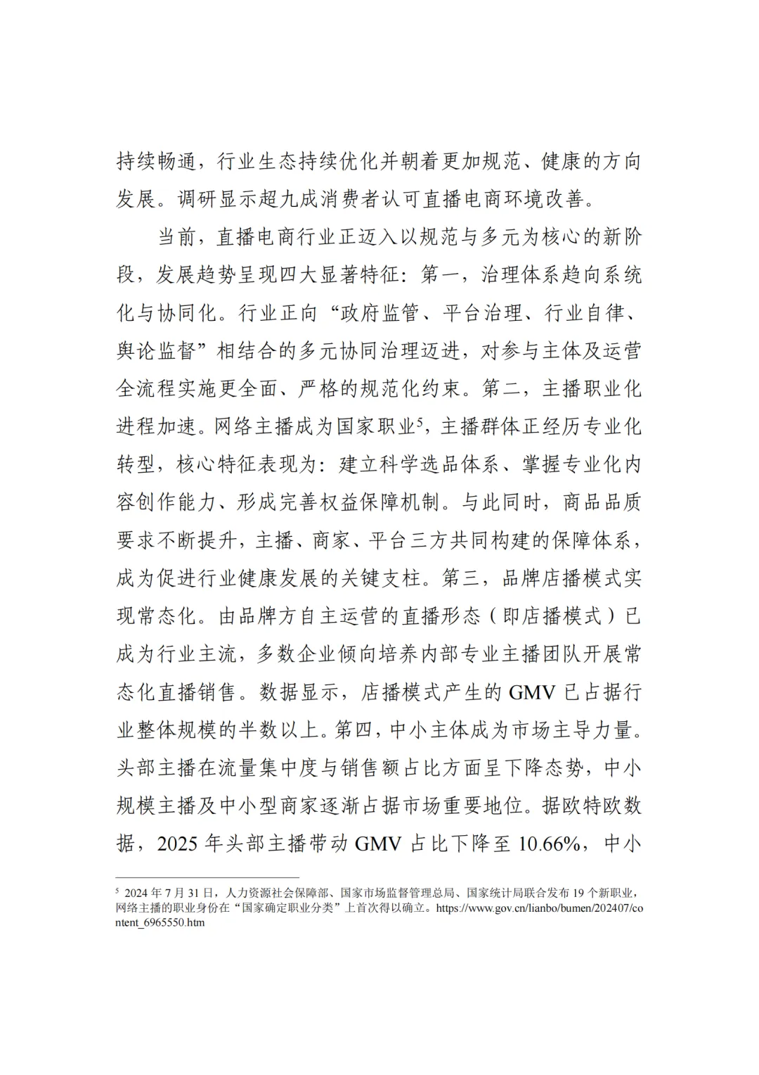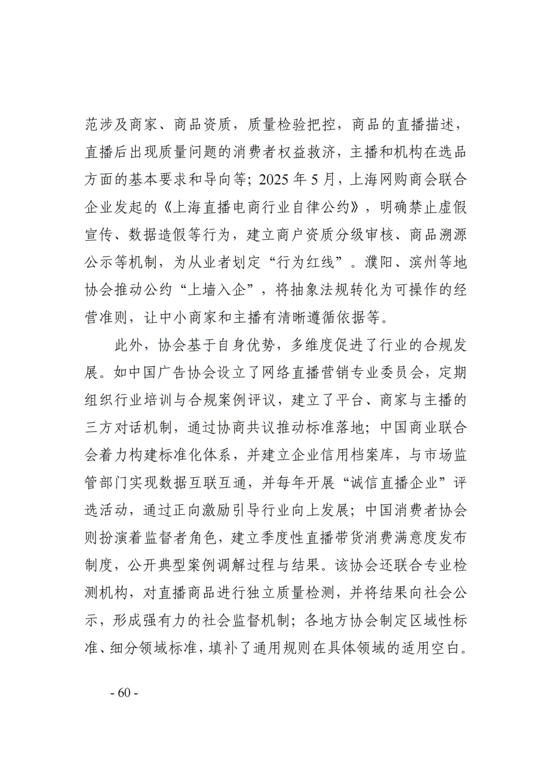白皮书提出五大发展建议:落实各主体法律责任、压实平台 “守门人” 职责、强化头部主播合规治理、引导中小主播与店播规范化经营、构建协同治理生态,为行业高质量发展提供路径指引,助力直播电商持续为数字经济注入韧性与活力。