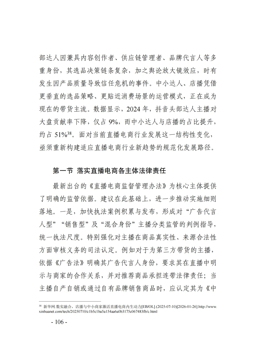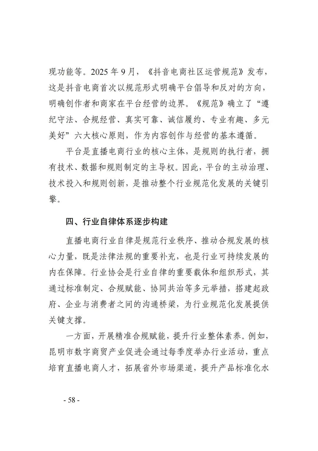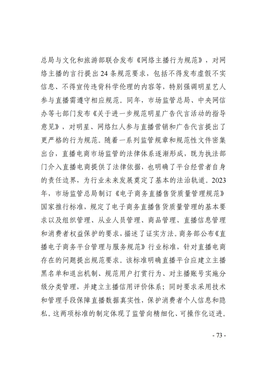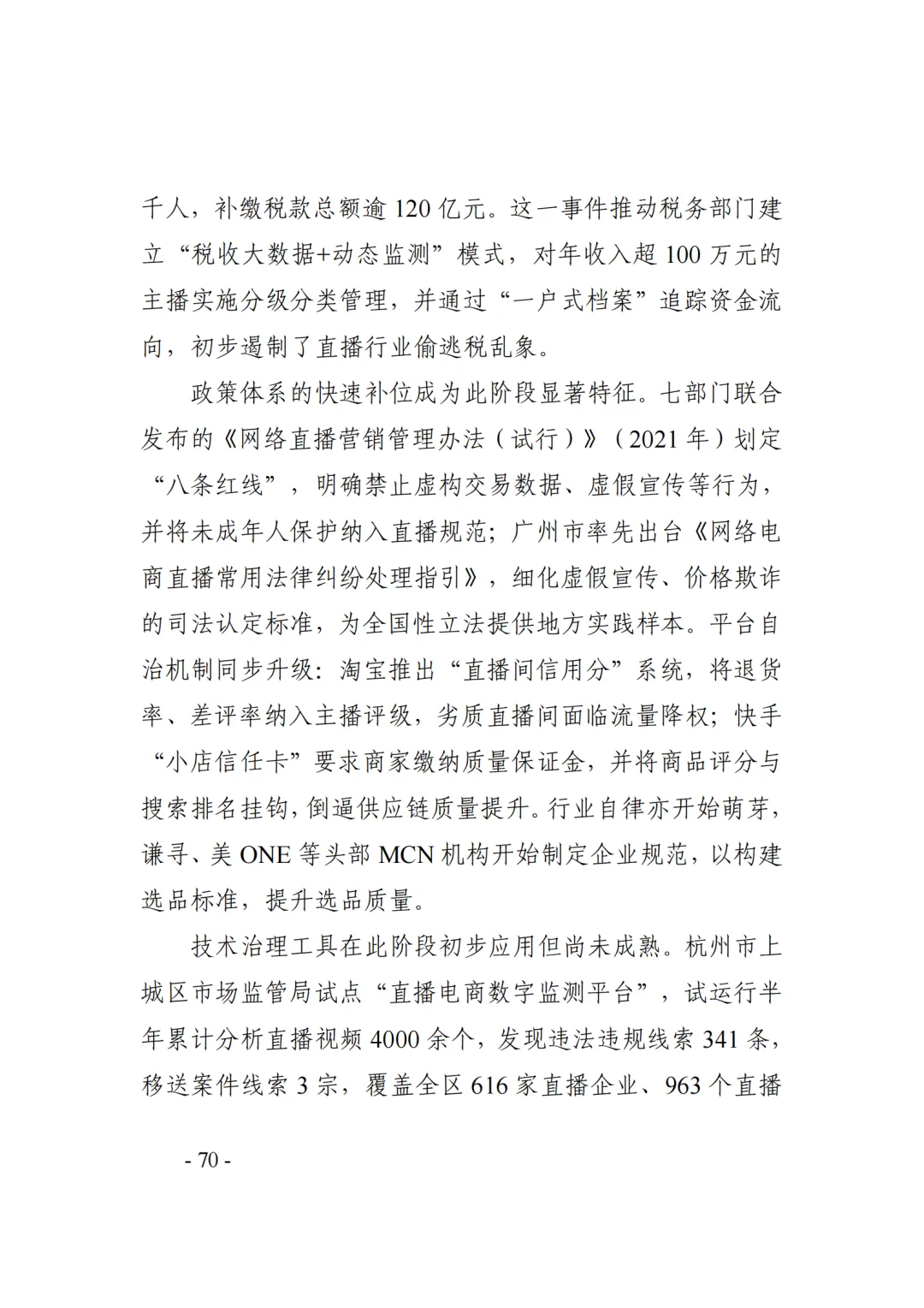 白皮书提出五大发展建议:落实各主体法律责任、压实平台 “守门人” 职责、强化头部主播合规治理、引导中小主播与店播规范化经营、构建协同治理生态,为行业高质量发展提供路径指引,助力直播电商持续为数字经济注入韧性与活力。