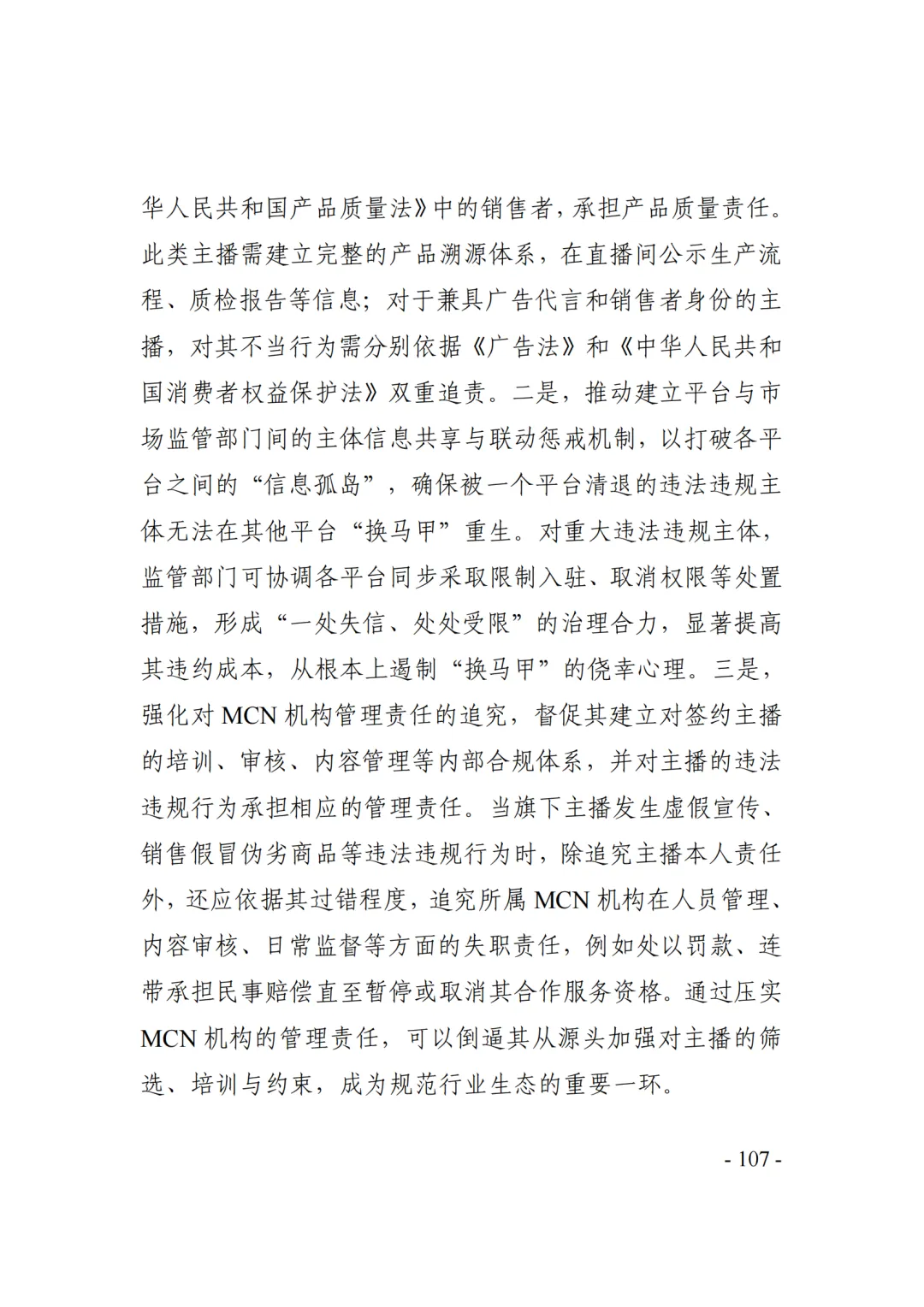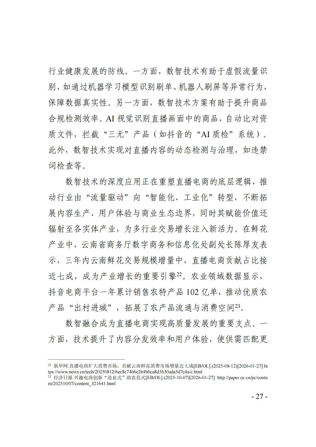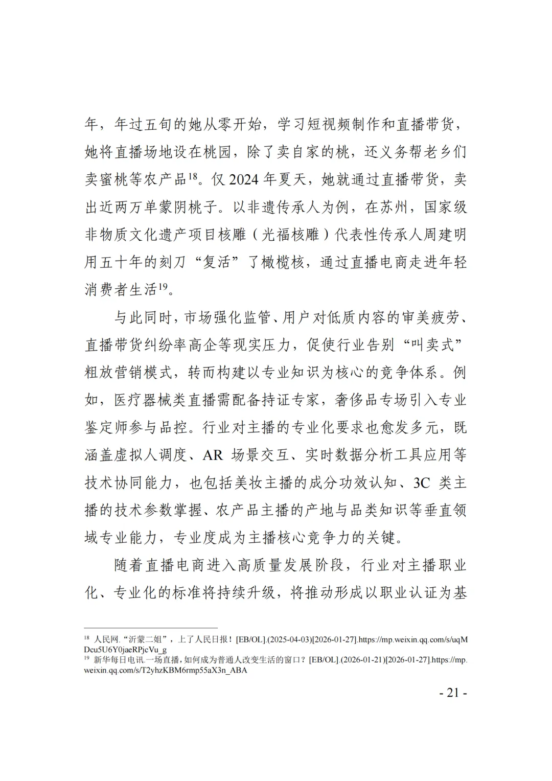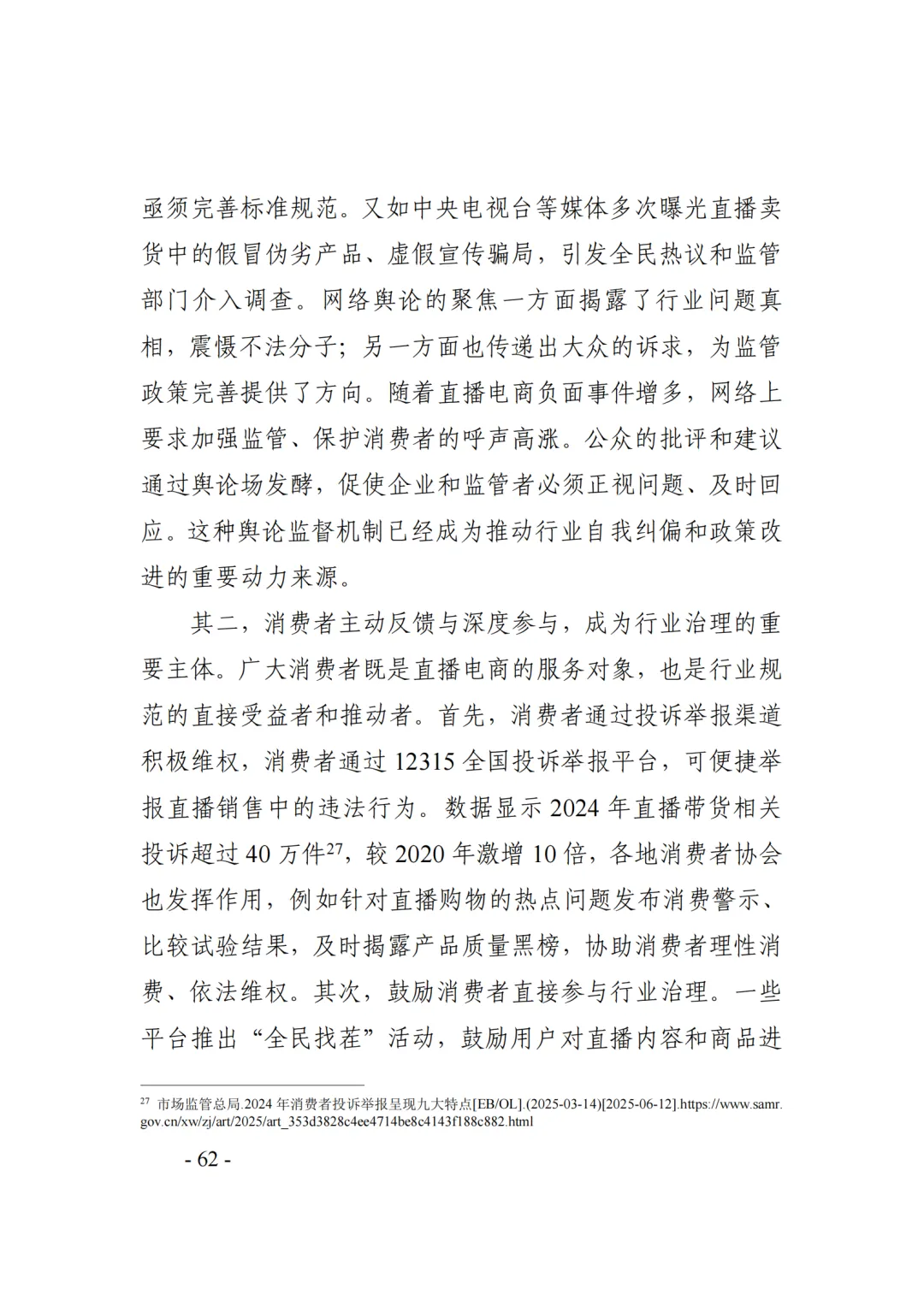 白皮书提出五大发展建议:落实各主体法律责任、压实平台 “守门人” 职责、强化头部主播合规治理、引导中小主播与店播规范化经营、构建协同治理生态,为行业高质量发展提供路径指引,助力直播电商持续为数字经济注入韧性与活力。