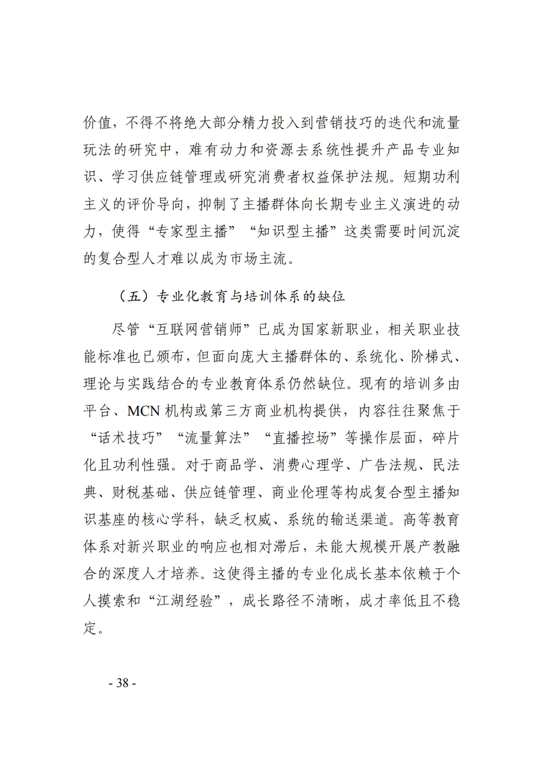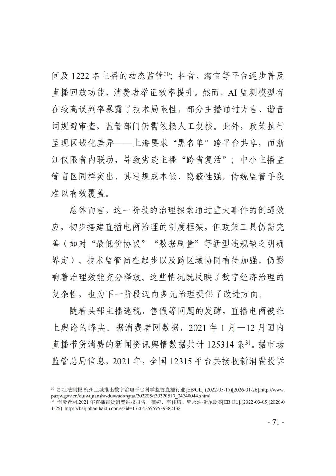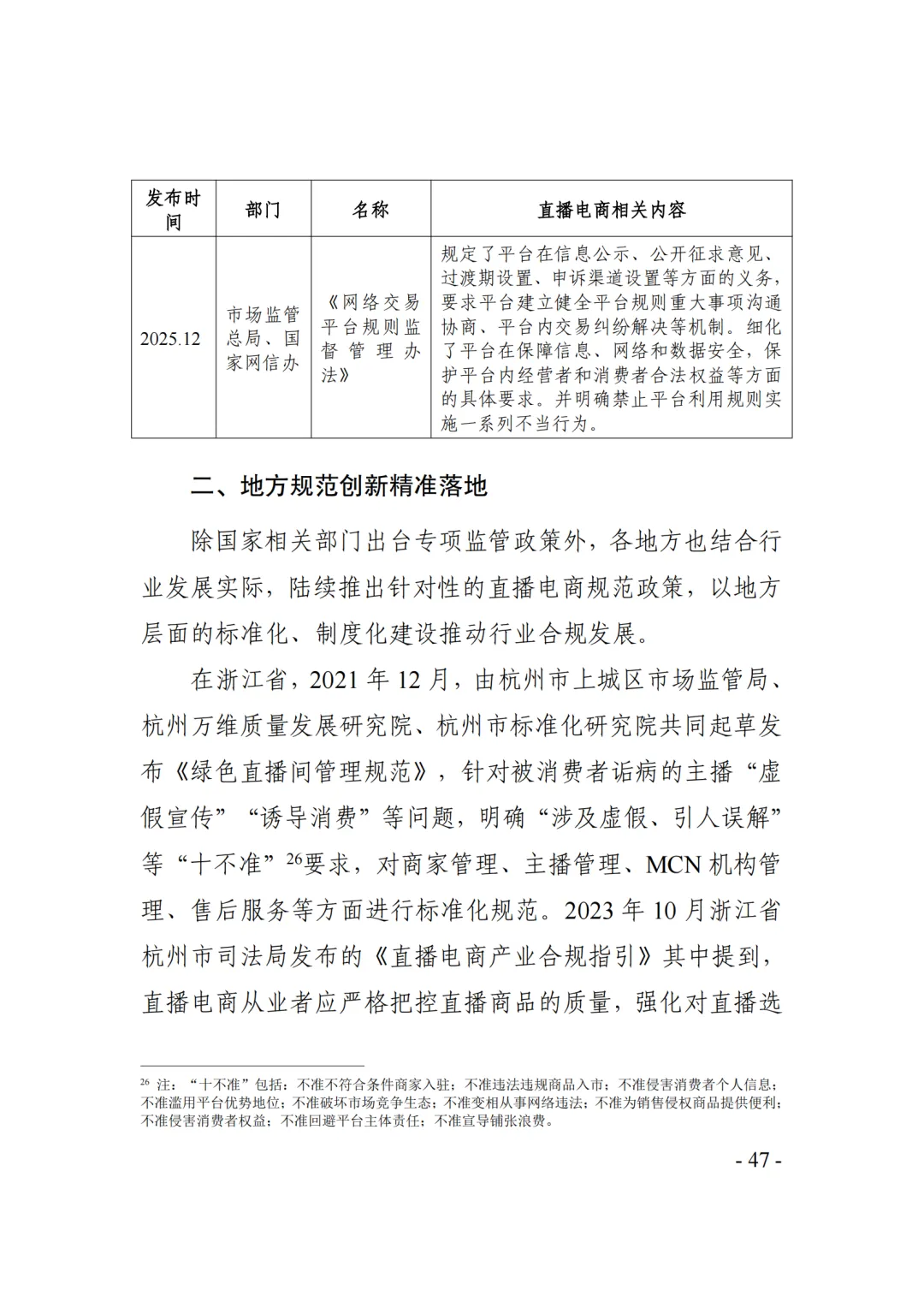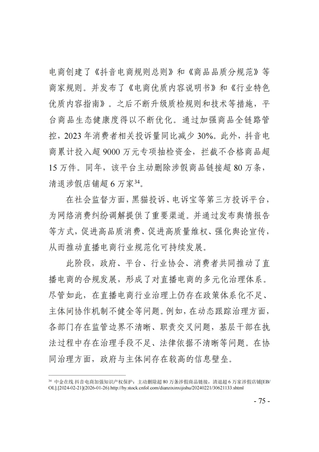 白皮书提出五大发展建议:落实各主体法律责任、压实平台 “守门人” 职责、强化头部主播合规治理、引导中小主播与店播规范化经营、构建协同治理生态,为行业高质量发展提供路径指引,助力直播电商持续为数字经济注入韧性与活力。