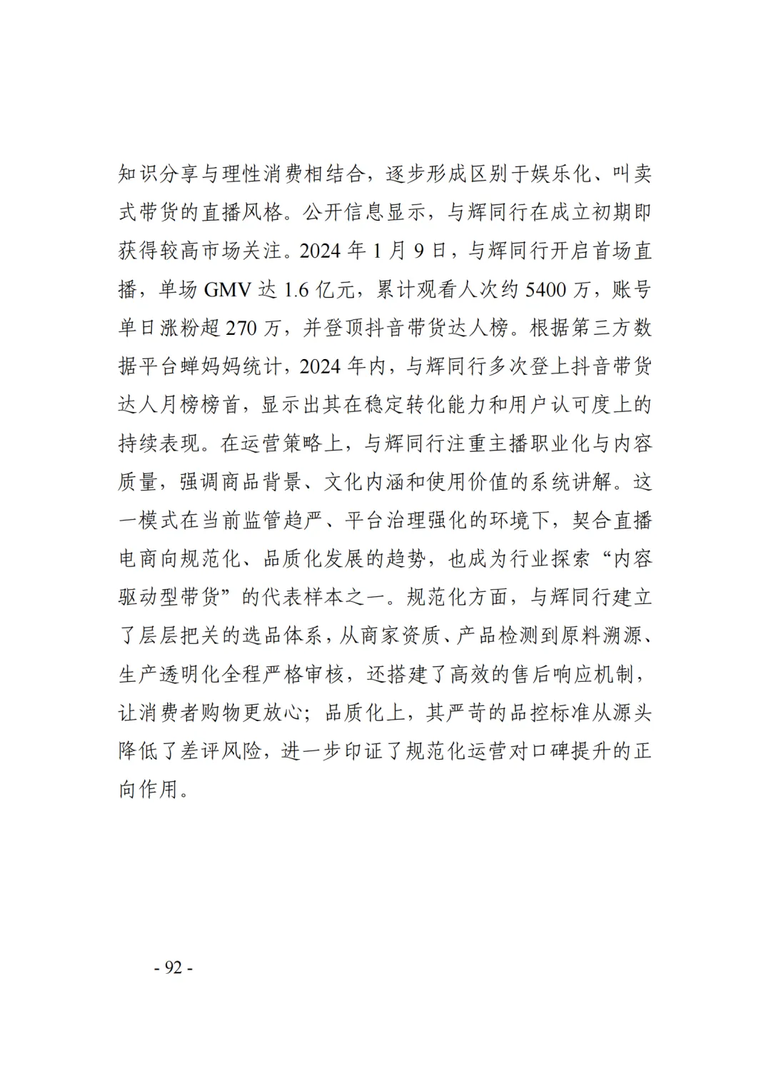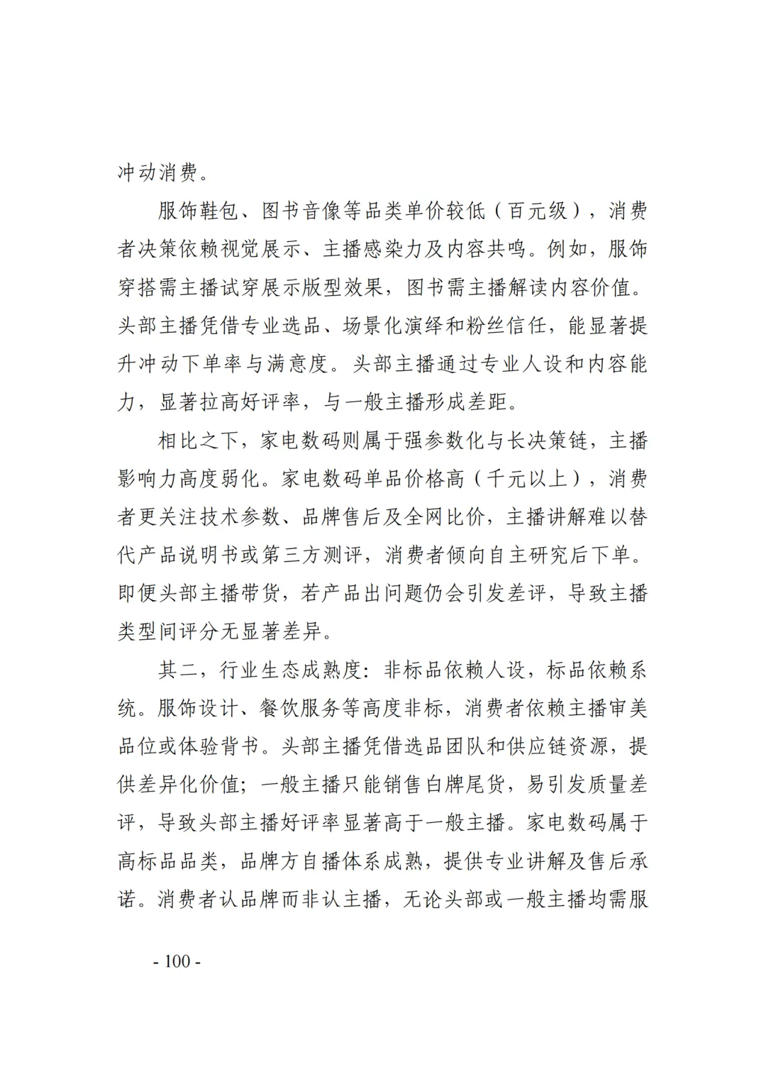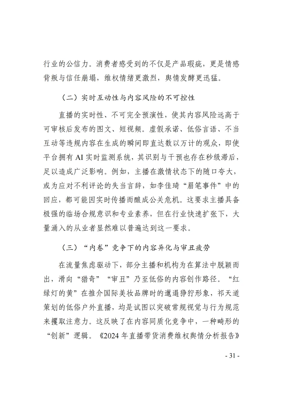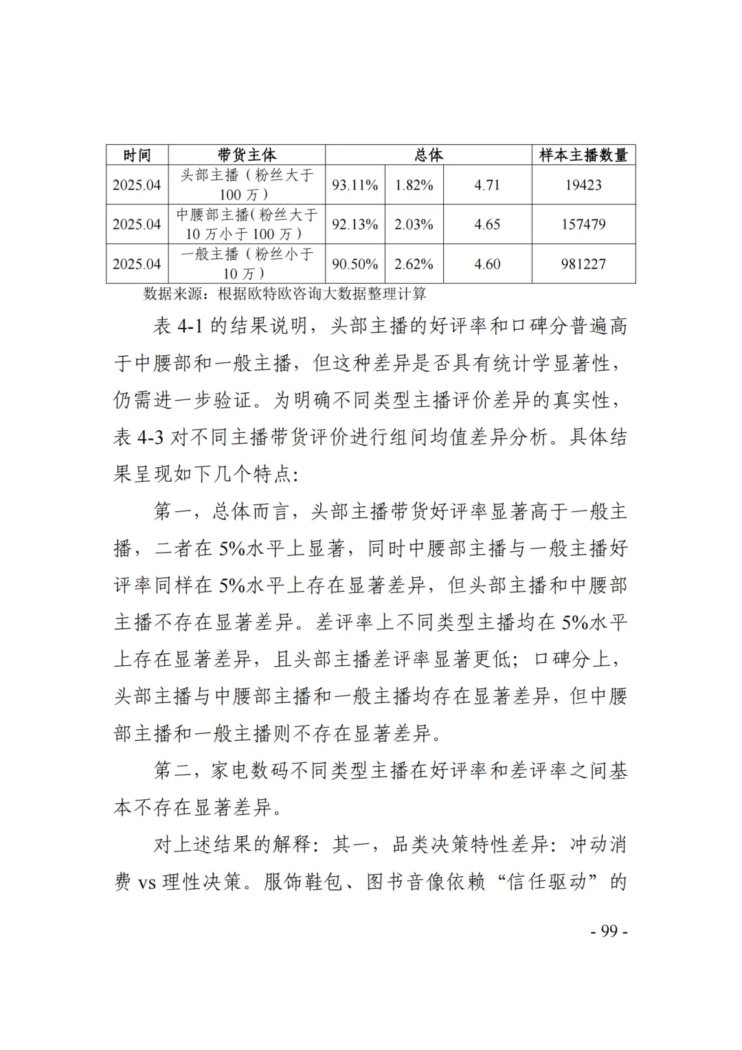 同时行业仍面临挑战:内容创新需平衡流量与合规,供应链品控因主体多元更趋复杂,复合型主播稀缺制约专业升级。经过多方治理,2024 年消费投诉增幅收窄至 19.3%,头部与中小主播好评率均超 90%,商品质量与消费信心稳步提升。