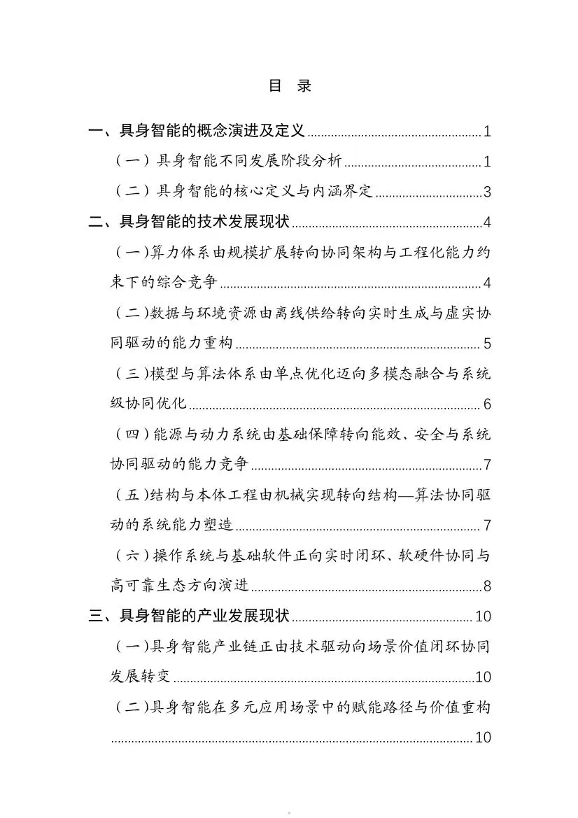 当人工智能(AI)拥有“身体”,能看、能走、能抓取,会为世界带来怎样的颠覆?这份来自国家智库赛迪研究院的报告,为我们描绘了“具身智能”这一前沿赛道的全景图。报告断言,具身智能正推动AI从处理信息的“离身智能”,迈向在真实物理世界中自主作业的“身体力行”新阶段。这不仅是技术演进,更是一场重塑全球产业竞争格局的深刻变革。