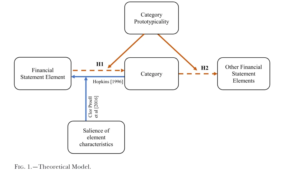 将财务报表项目分类归入不同类别,是财务信息列报的核心基础。心理学研究表明,类别分类会传递信息,而个体会依据这些信息做出判断(Loken et al., 2008)。现有会计学研究发现,财务报表类别的特征会投射到其成员项目上,进而影响使用者对企业的判断(Hopkins, 1996; Clor-Proell et al., 2016)。但截至目前,尚无研究探究财务报表类别中的反向分类效应,即把某一项目归入特定财务报表类别,会影响使用者对该类别本身的感知;也未探究相关的溢出效应,即项目的分类会影响使用者对同类别内其他项目的感知。