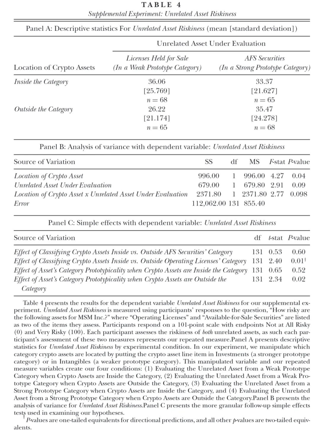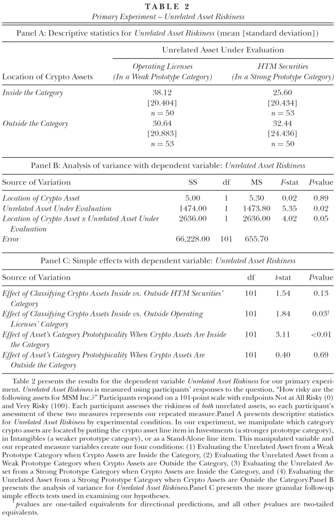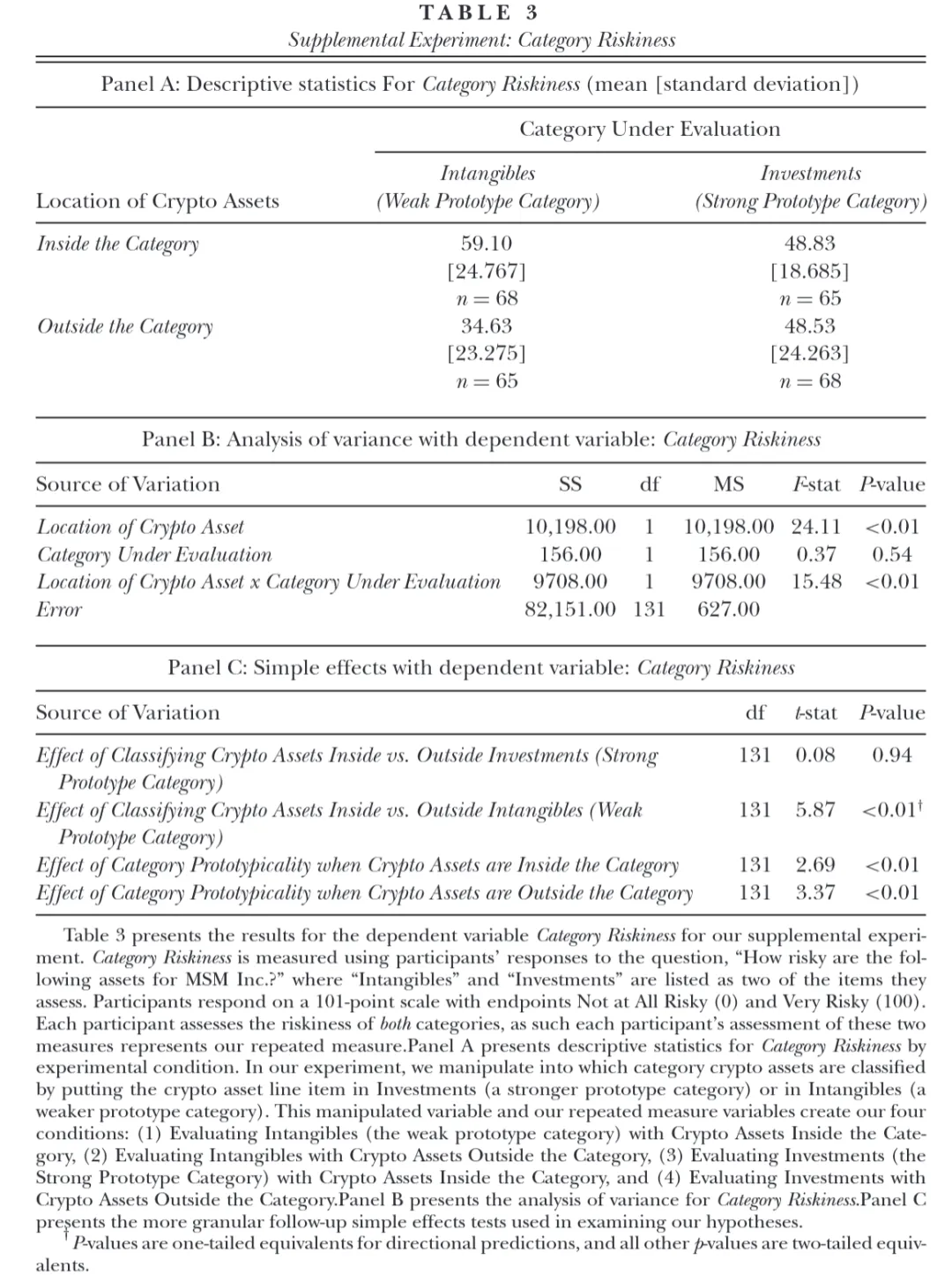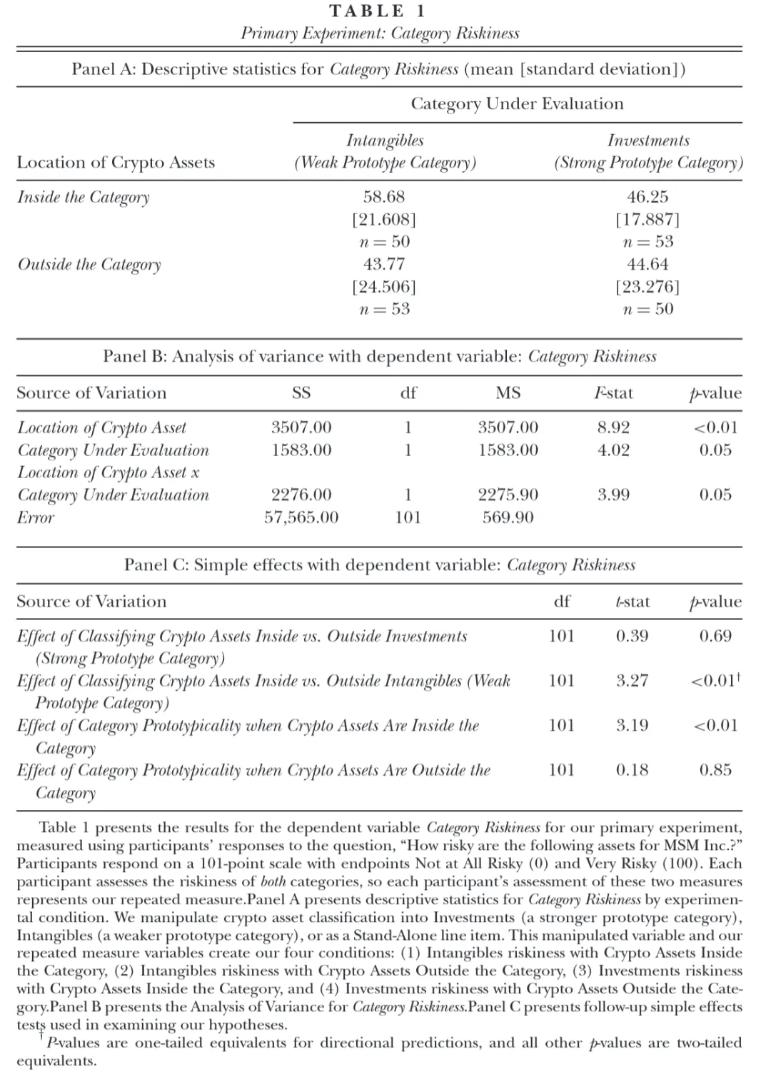 本文以加密资产为研究场景,以经验丰富的财务分析师为研究对象,核心探究两个问题:一是将加密资产这一新型项目归入无形资产或投资类别,是否会影响使用者对该类别本身的风险感知;二是上述分类行为,是否会进一步影响使用者对同类别内其他不相关项目的风险感知。