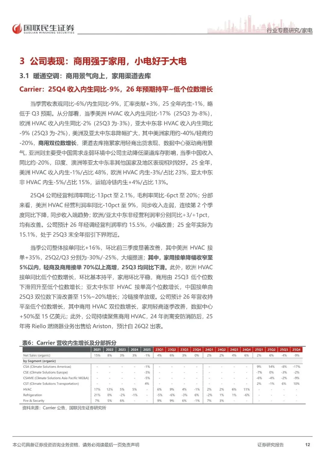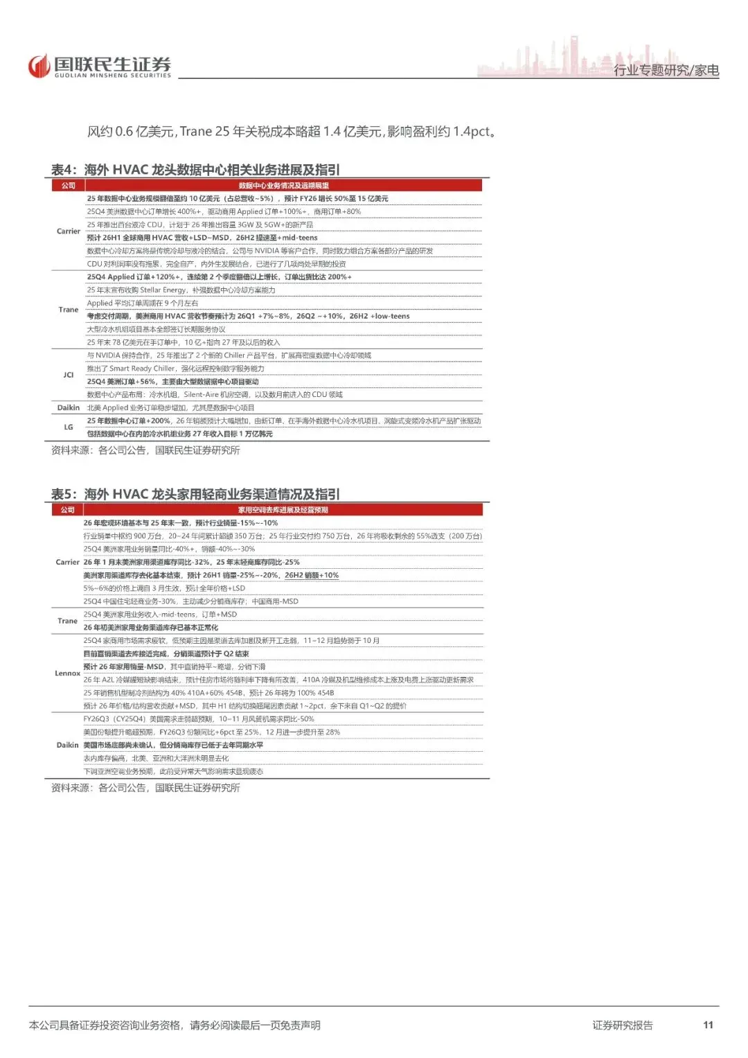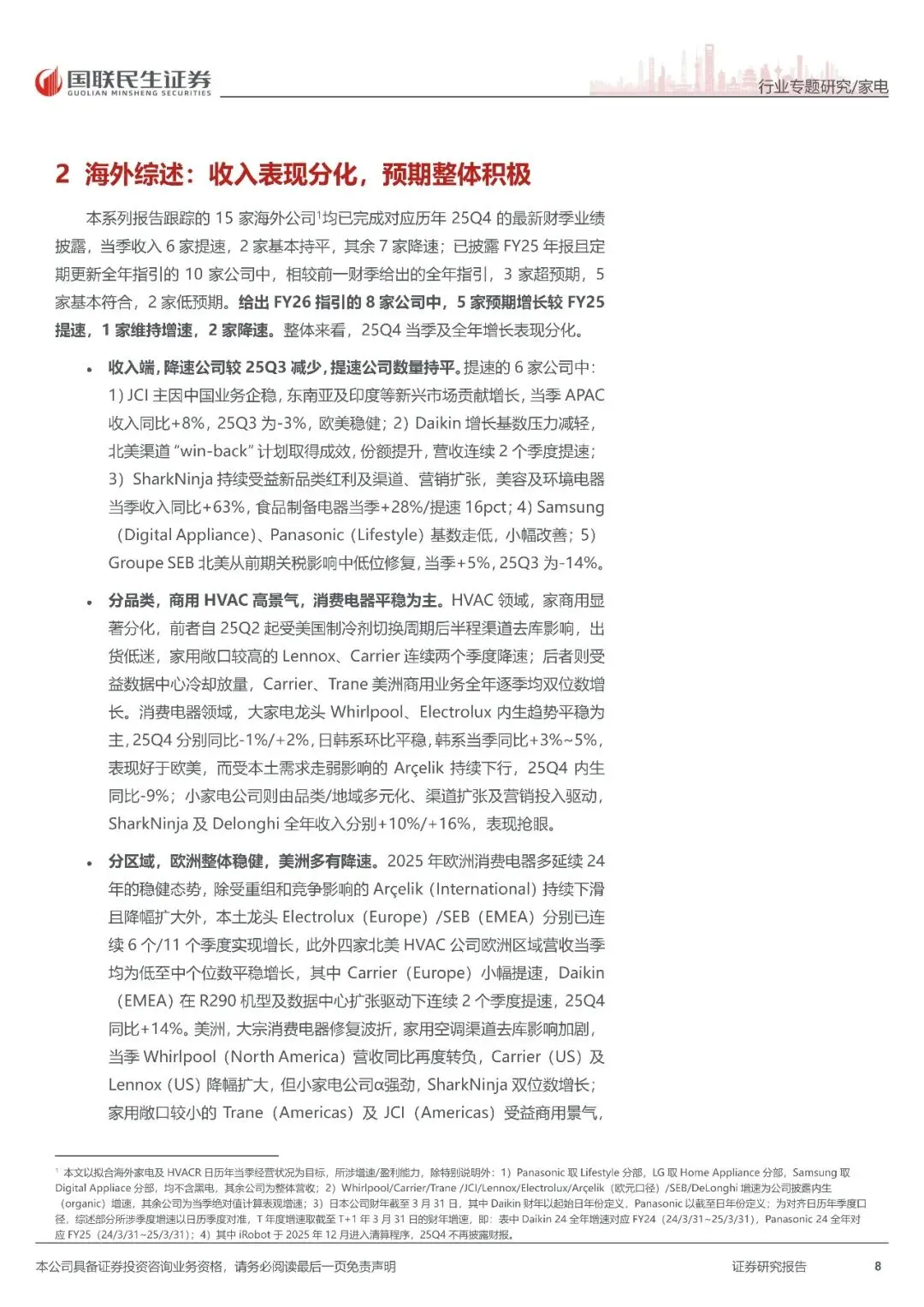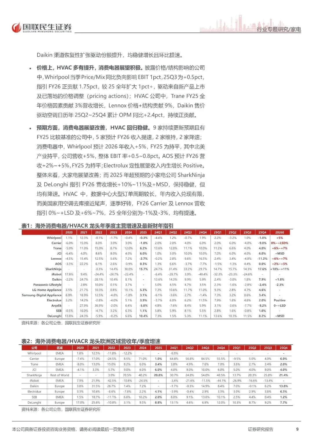 海外家电行业财报跟踪2025年报篇:商用HVAC订单高增,消费电器需求弱平稳-260407-国联民生证券-33页