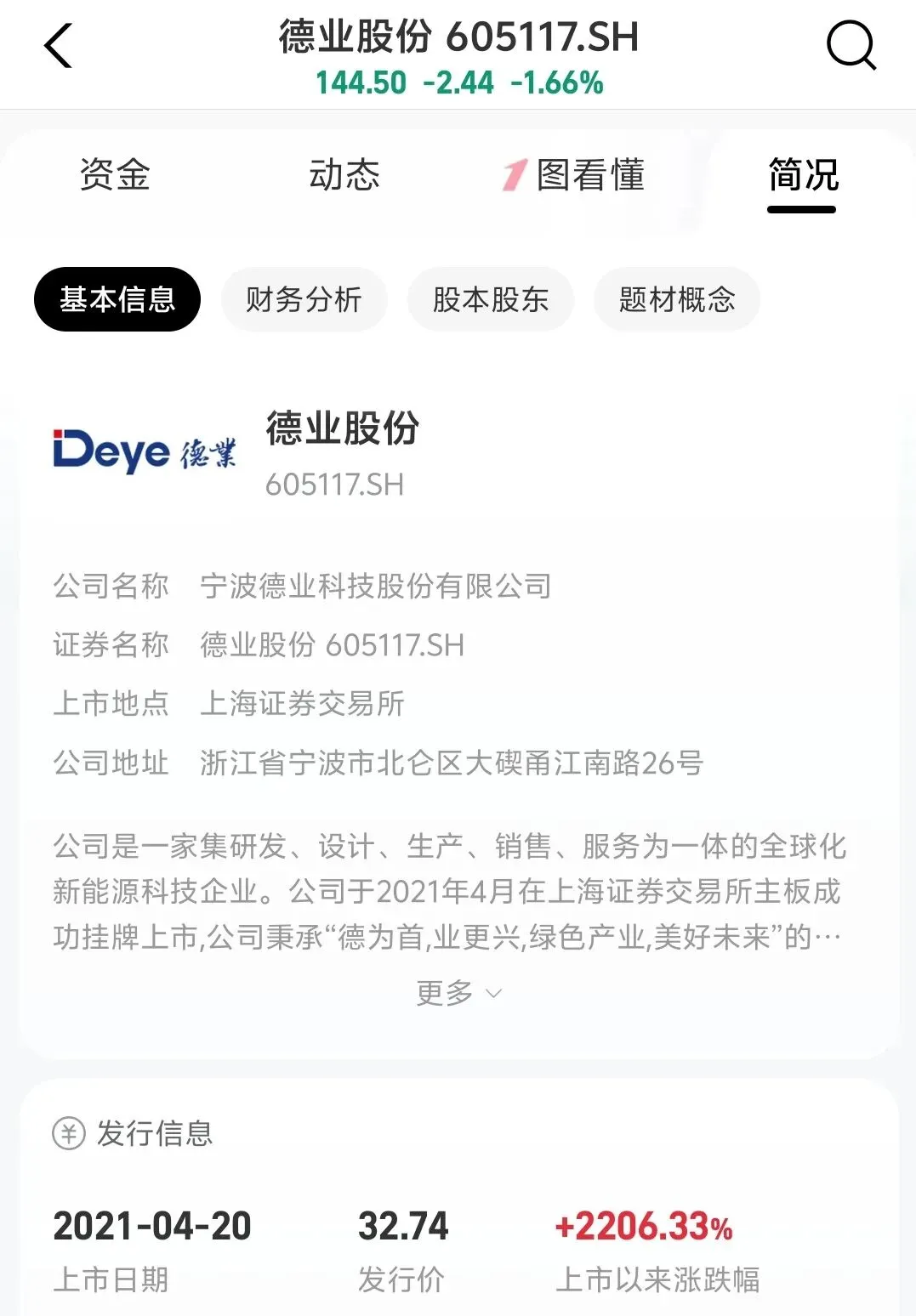 德业股份这家公司是光伏设备行业龙头,公司2021年上市5年股价涨幅2206%,具有超级成长股属性,公司以前是靠做空调零件、除湿机起家的,后来眼光独到转型搞起了新能源。现在它已经是全球户用储能逆变器的大佬了。2025年整个储能行业都在打价格战、忙着去库存,日子不好过,但德业股份顶住了压力,业绩还在稳稳增长。
