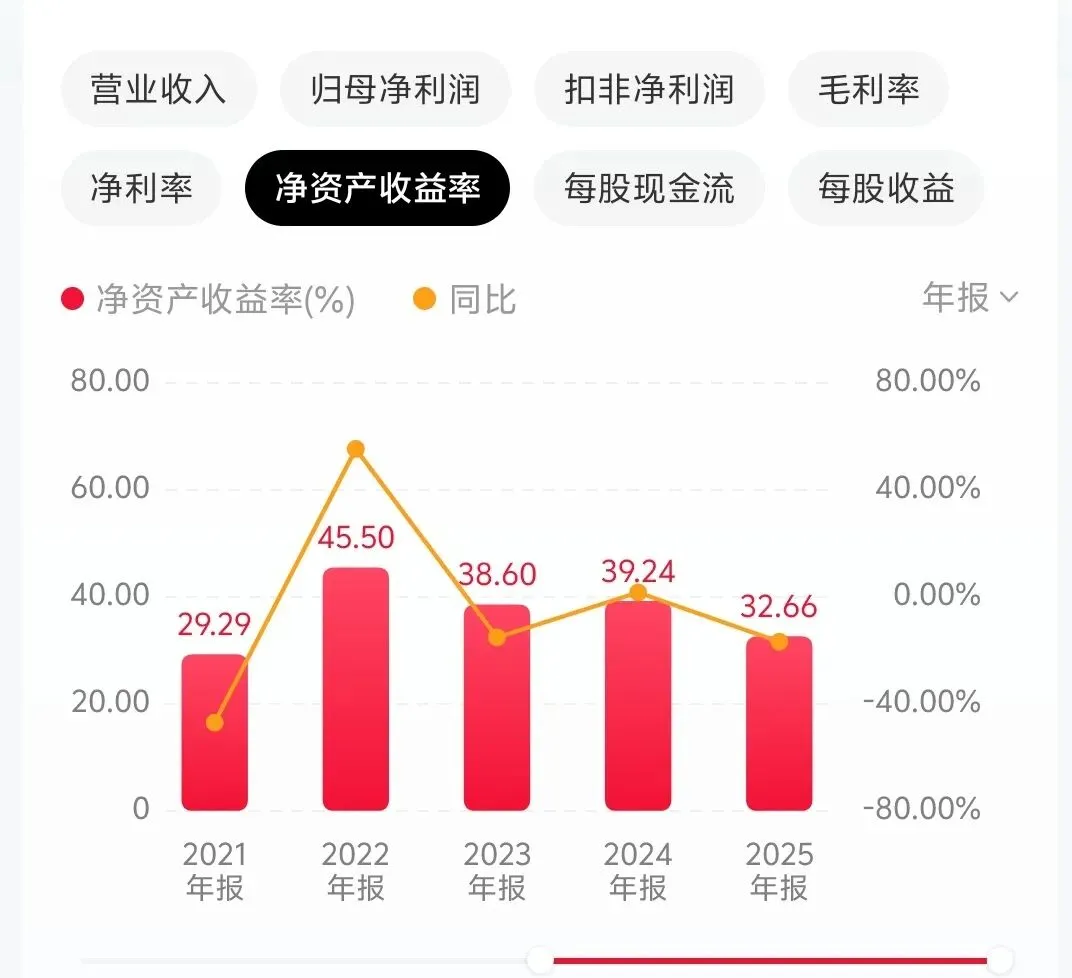 公司近五年ROE常年保持在30%以上,简单说就是公司赚钱能力特别强,投资回报率特别高。