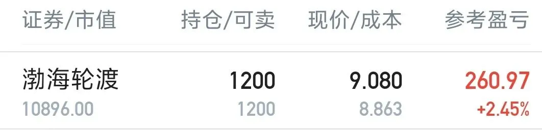 4.人是矛盾综合体,有时候希望买股能抄到底部,但有时候又不喜欢精准抄底,因为往往精准买到底部的公司,买了一份观察仓他就不跌了,比如5.6的中国电信,6.8的华能国际,8.9元的渤海轮渡,就1%的仓位,不跌没有办法一次重仓,最终也赚不到什么钱。