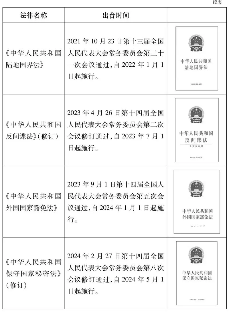 完善国家安全法治体系。积极推进重点领域、新兴领域、涉外领域国家安全立法,完善涉外法律法规体系和法治实施体系,健全国家安全党内法规体系,打通立法、执法、司法、普法的痛点堵点。
