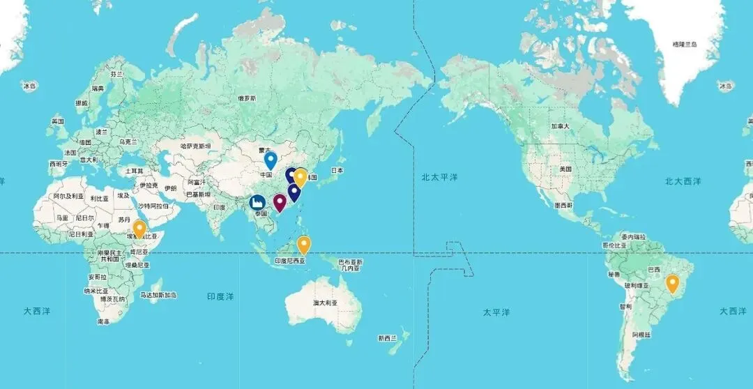 下图是瑞幸咖啡全部原材料供应商及自营烘焙工厂的分布情况,展示了供应链的全球化采购布局。