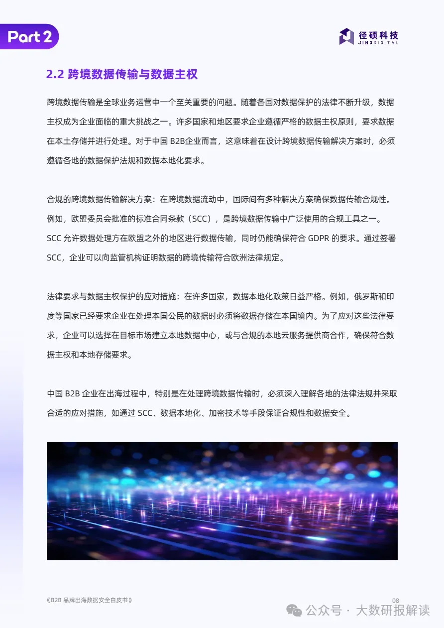 本文件深度剖析了B2B品牌出海过程中的数据安全与合规挑战,为出海企业提供了全景式的全球化数据安全架构设计与合规落地指南。文件指出,随着欧盟GDPR、美国CCPA、中国PIPL等数据保护法规日趋严格,跨境企业必须在数据主权、跨境传输合规、云架构部署等方面做出系统性战略调整,以规避巨额罚款与品牌信任危机。