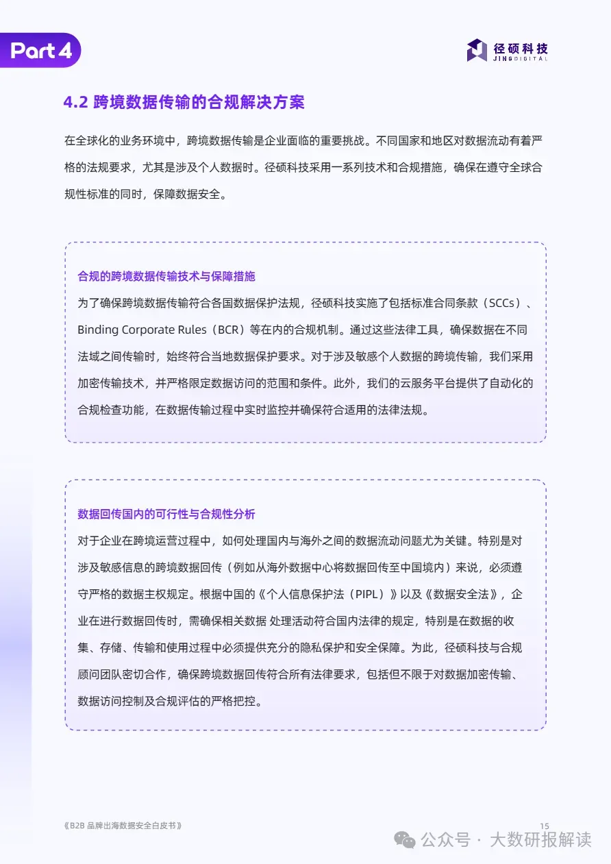 • 跨境数据传输三大合规路径:企业可通过标准合同条款(SCC)实现欧盟向境外传输数据的合法性;对集团内部数据流动可申请约束性企业规则(BCR);涉及敏感数据回传中国时,需结合PIPL安全评估+加密传输+访问控制三重机制确保合规。