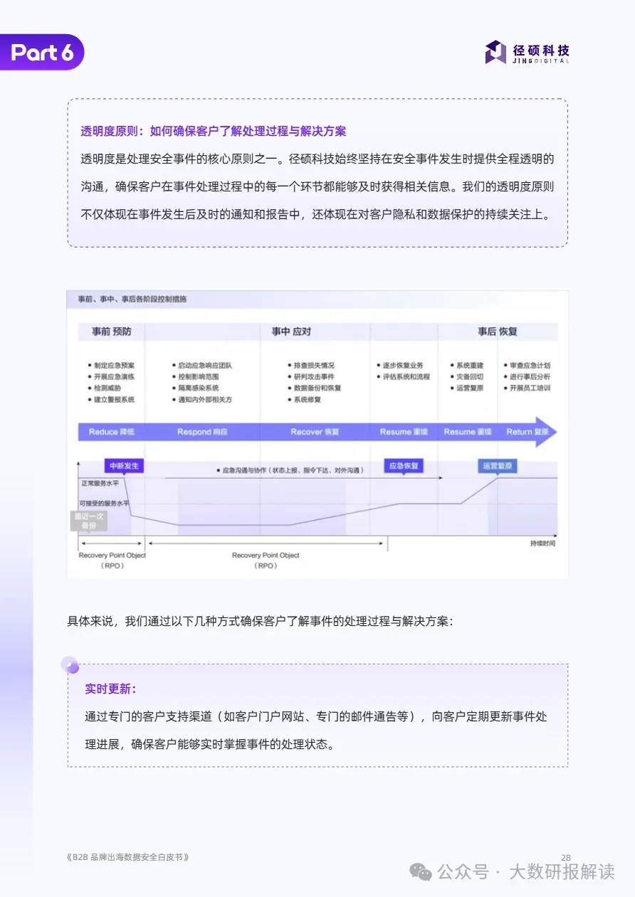 • 第三方审计+透明事件响应增强信任:通过定期获取ISO 27001、SOC 2等第三方合规认证,并向客户开放审计报告,提升品牌可信度;一旦发生安全事件,执行72小时内通知+事件后报告+客户反馈闭环,维护客户关系与声誉。