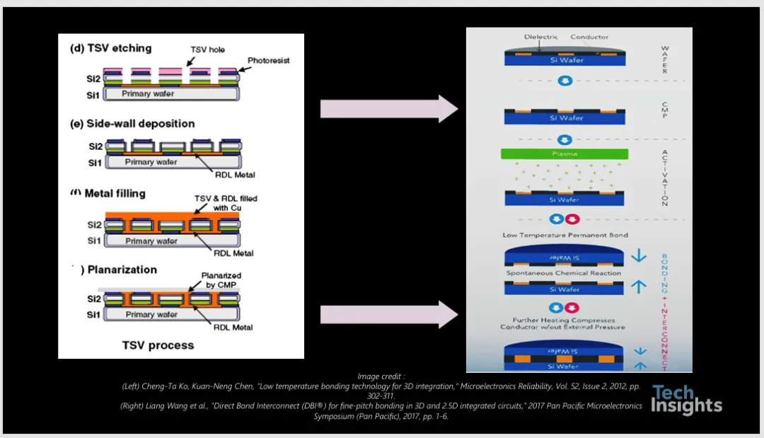 应用与产业现状方面,当前已广泛应用于 CMOS 图像传感器(CIS)、高性能计算芯片、3D 缓存等领域。索尼、台积电、三星、AMD 等企业纷纷布局,代表性产品包括 AMD 3D V-Cache 处理器、索尼 IMX 系列传感器等。不同厂商技术路线略有差异,键合间距集中在 2.5-8μm,塔科马半导体实现最小 2.5μm 间距,台积电、索尼在 CIS 领域应用成熟。