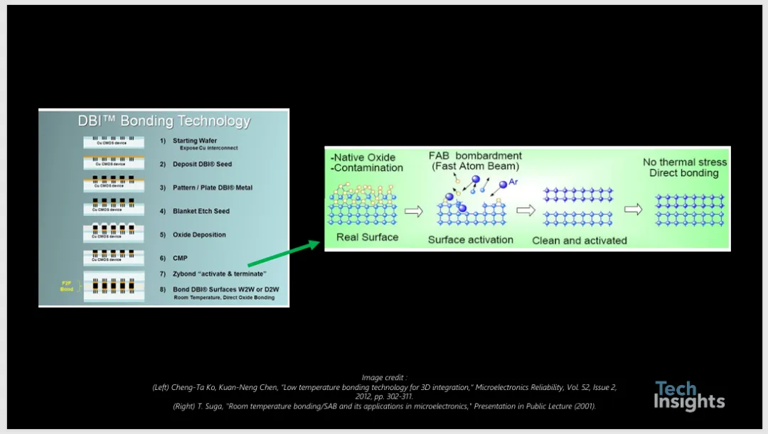 技术本质与优势方面,混合键合是兼具氧化物键合与铜 - 铜直接键合的 3D 集成技术,无需凸点,可实现更小键合间距(已达 2.5μm 甚至 1μm)与更高连接密度,相比传统凸点键合,在性能、功耗和集成度上优势显著,是突破摩尔定律的关键技术之一。