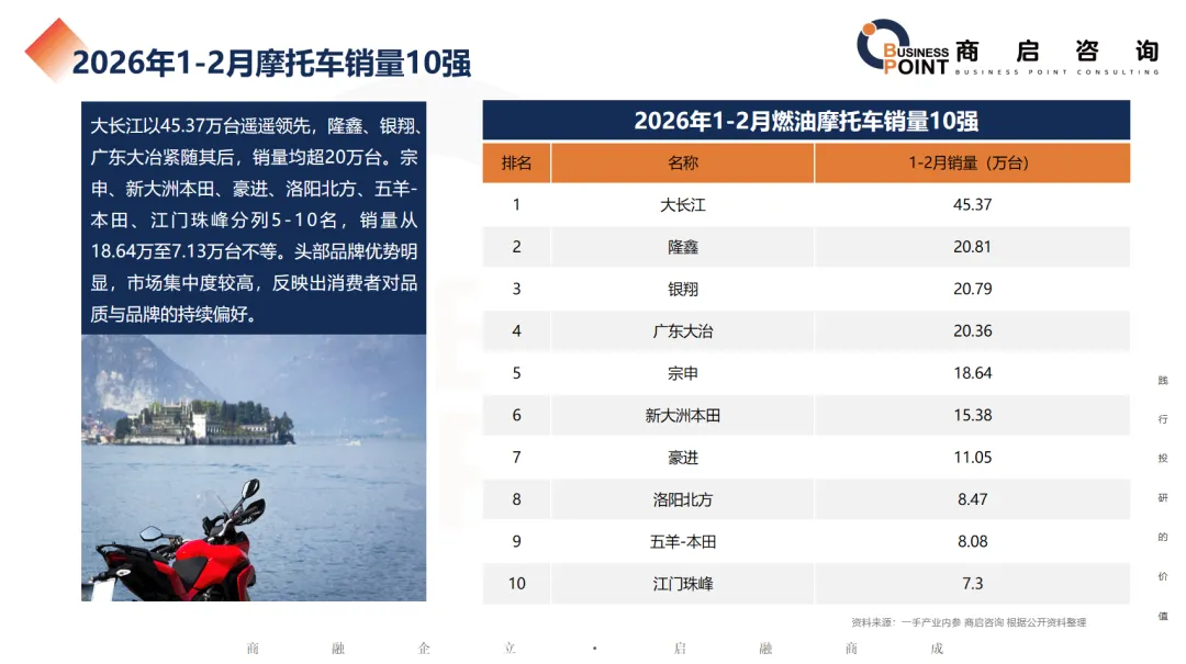 2026年1-2月摩托车销量10强