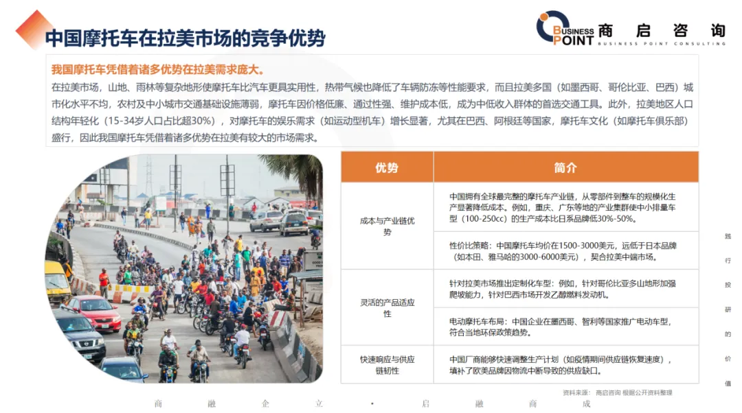 我国摩托车凭借着诸多优势在拉美需求庞大。