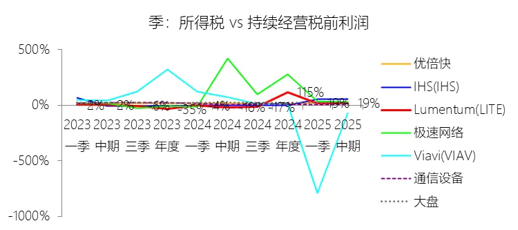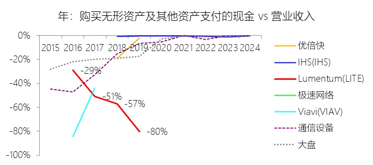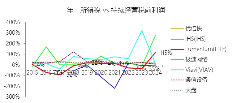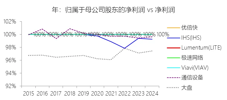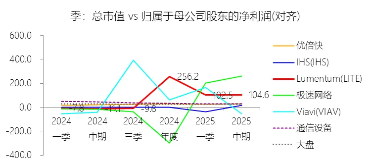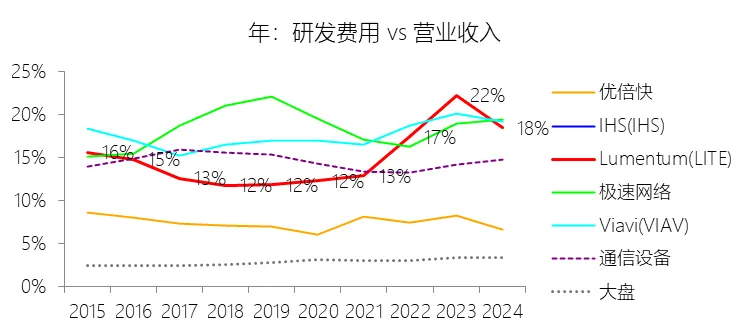 营业收入增长率:2026财年中期,Lumentum的营业收入为11.99亿美元,同比增长62.26%,增速同比上升54.27个百分点;2016-2025财年(九年)增长82.17%,年复合增长6.89%,比通信设备行业的复合增速高2.26个百分点,长期呈下降趋势。增速短期上升主要由于云和人工智能(AI)基础设施需求的强劲增长,特别是激光芯片和激光组件受益于向200G通道速度的迁移而大幅增加出货量,以及数据传输产品在长途和海底网络应用中的销量上升;同时,网络设备制造商在经历2024财年的去库存压力后,库存水平趋于正常化,叠加收购Cloud Light公司带来的新增收入贡献,共同拉动了短期营收的爆发式增长。增速长期下降主要由于光通信市场随时间推移日益成熟并呈现商品化趋势,导致行业竞争持续加剧(特别是来自亚太地区的竞争对手)并产生显著的价格压力;此外,受宏观经济波动、地缘政治风险及出口管制(如针对华为等主要客户的贸易限制)影响,市场需求表现出明显的周期性和不确定性,且公司为优化利润率主动退出低毛利的收发器模块等业务,也在一定程度上减缓了长期营收增速。增速高于通信设备行业的复合增速主要由于公司精准把握了云计算、AI/ML、5G移动网络以及3D传感等具备强劲长期增长趋势的终端市场机遇;同时,公司通过持续的研发投入和一系列重大的战略性并购(如合并Oclaro、NeoPhotonics及Cloud Light),不仅实现了业务规模的跨越式扩张,还巩固了其在ROADMs、相干光组件及高速光芯片等核心技术领域的全球领先地位。营业成本:2026财年中期,Lumentum的营业成本为7.78亿美元,同比增长38.48%,与营业收入的比例为64.85%(营业成本率,即1-毛利率),同比下降11.14个百分点;2016-2025财年(十年),此项合计为96.67亿美元,平均比例为66.11%,比通信设备行业的均值高15.61个百分点,长期呈上升趋势。营销费用:2026财年中期,Lumentum的营销费用为1.81亿美元,同比增长18.74%,与营业收入的比例为15.11%,同比下降5.54个百分点;2016-2025财年(十年),此项合计为23.06亿美元,平均比例为15.77%,比通信设备行业的均值高0.7个百分点,长期呈上升趋势。研发费用:2026财年中期,Lumentum的研发费用为1.62亿美元,同比增长8.75%,与营业收入的比例为13.47%(研发费用率),同比下降6.63个百分点;2016-2025财年(十年),此项合计为21.79亿美元,平均比例为14.90%,比通信设备行业的均值高0.4个百分点,长期呈上升趋势。所得税率:2026财年中期,Lumentum的所得税为0.19亿美元,同比减少11.47%,与持续经营税前利润的比例为18.98%(所得税率),同比上升36.92个百分点;2016-2025财年(十年),此项合计为0.40亿美元,平均比例为16.91%,比通信设备行业的均值低9.82个百分点,长期呈上升趋势。净利率:2026财年中期,Lumentum的净利润为0.82亿美元,与营业收入的比例为6.87%(净利率),同比上升26.26个百分点;2016-2025财年(十年),此项合计为1.98亿美元,平均比例为1.35%,比通信设备行业的均值低8.75个百分点,长期呈下降趋势。比例短期上升主要由于云和人工智能(AI)基础设施需求的爆发式增长带动了营业收入大幅提升,使得工厂内部产能利用率显著提高,从而大幅降低了制造成本在收入中的占比;同时,向200G通道速度的迁移提升了高利润激光芯片产品的平均售价,且随着部分收购产生的无形资产已摊销完毕,相关摊销费用显著减少,加之研发和营销费用在收入增长的规模效应下占比同比大幅下降,共同推动了净利率的回升。比例长期下降主要由于光通信市场随时间推移日益成熟并呈现商品化趋势,导致行业竞争持续加剧,尤其是来自亚太地区的竞争对手带来了显著的价格压力;此外,公司在长期内频繁进行大型并购(如Oclaro和NeoPhotonics),产生了巨额的无形资产摊销和库存增值调整,叠加公司为优化业务结构而退出低毛利产品线(如收发器模块)所产生的重组支出、资产减值及工厂整合成本,对长期利润水平造成了持续拖累。比例低于通信设备行业的均值主要由于公司的平均营业成本比例(66.11%)远高于行业均值(高出15.61个百分点),这反映出其产品制造及供应链成本相对较高;同时,公司为了维持核心竞争力,在研发(平均14.90%)和营销费用上的投入强度也略高于行业平均水平,且受美国出口管制(如对华为的贸易限制)及地缘政治风险影响,导致其市场需求和产能利用率表现出较大的波动性,难以维持行业平均水平的盈利能力。净利润增长率:2026财年中期,Lumentum的净利润为0.82亿美元;2016-2025财年(九年)增长178.49%,年复合增长12.05%,比通信设备行业的复合增速高8.06个百分点,长期呈上升趋势。归属于母公司股东的净利润:2026财年中期,Lumentum的归属于母公司股东的净利润为0.82亿美元,与净利润的比例为100.00%,同比持平;2016-2025财年(十年),此项合计为1.98亿美元,平均比例为100.00%,比通信设备行业的均值高0.16个百分点,长期呈持平趋势。第3章资产负债表