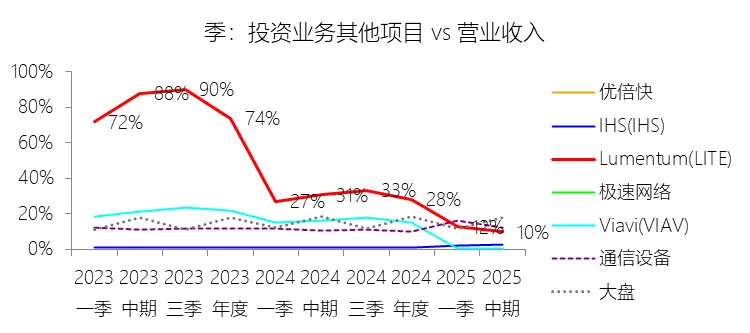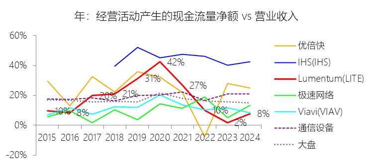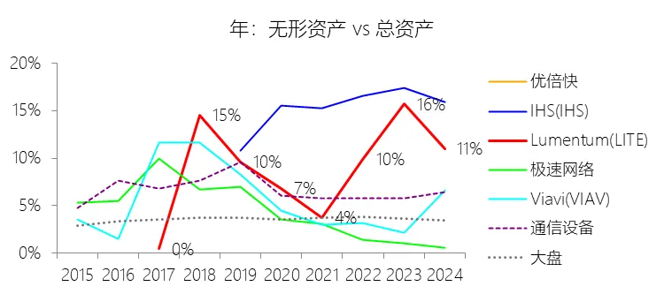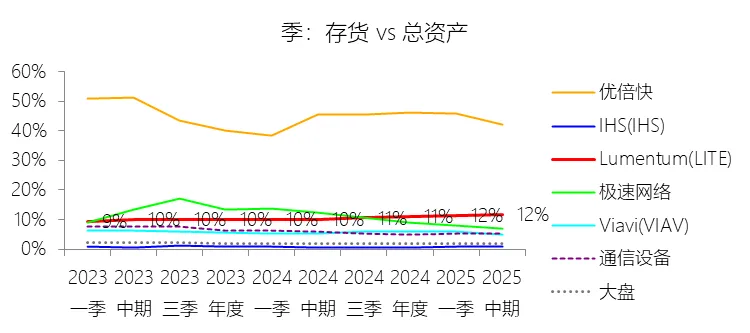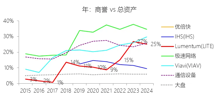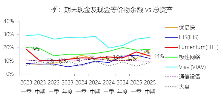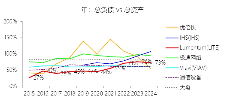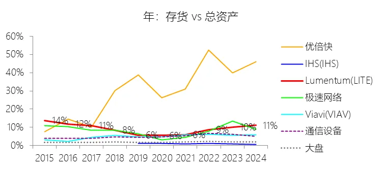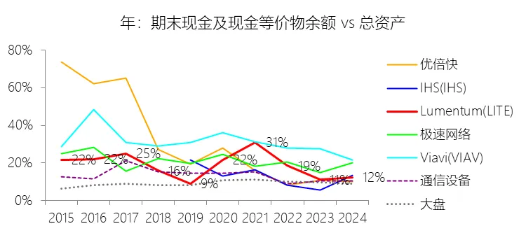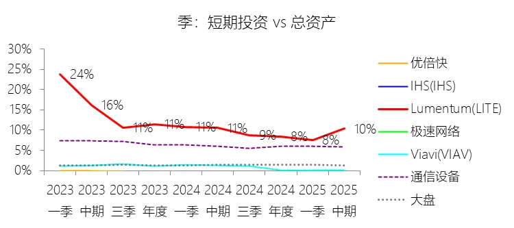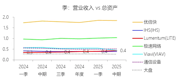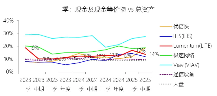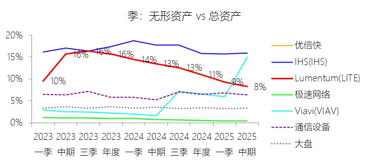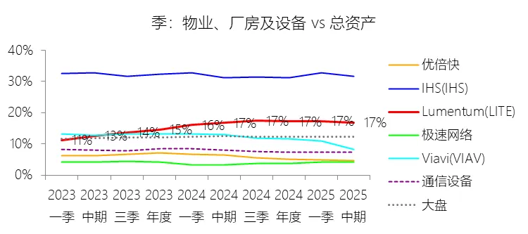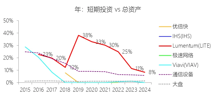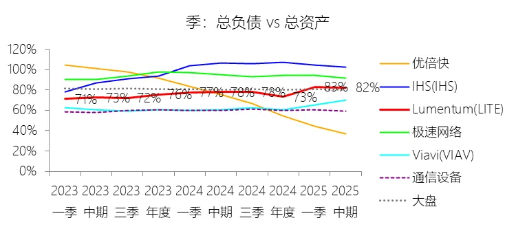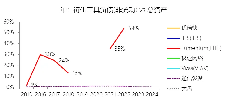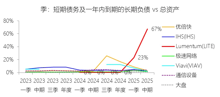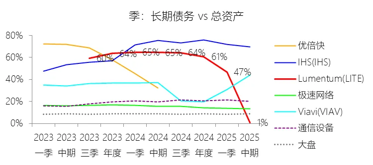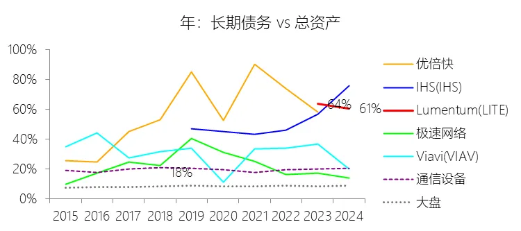 负债率:2026财年中期末,Lumentum的总负债为39.59亿美元,对比年初增长28.36%,与总资产的比例为82.38%(负债率),同比上升4.38个百分点;2016-2025财年(十年),此项与总资产的平均比例为57.76%,比通信设备行业的均值低1.8个百分点,长期呈上升趋势。比例短期上升主要由于公司在2026财年中期因股价上涨触发了转换条款,导致包括2026、2028、2029及2032年到期的多笔可转换高级票据(总计约31.83亿美元)从非流动负债重新分类为流动负债,显著增加了短期债务规模;此外,为支持云和人工智能基础设施需求的强劲增长,公司在增加存货备货的同时导致应付账款显著上升,且于2026财年第一季度发行了2032年到期的可转换票据以充实资金。比例长期上升主要由于公司近年来执行了激进的行业整合策略,通过对Oclaro、NeoPhotonics和Cloud Light等公司的一系列大规模并购,不仅承担了被收购方的负债,还多次通过发行可转换高级票据来支付巨额现金对价;随着公司业务规模的跨越式扩张,为了扩建泰国及日本的制造基地,公司进一步增加了长期贷款及债务融资,导致总负债规模随资产同步扩张且增速更快。比例低于通信设备行业的均值主要由于公司在进行大型并购时,通常采用“现金+股票”的组合对价方式,通过发行普通股分担了部分融资压力(如在Oclaro交易中发行了约4.57亿美元的股票);同时,公司在早期的负债水平处于较低基数,且长期保持较高的现金及投资余额,反映出其在历史经营中维持了相对审慎的资本结构,尽管近年来因战略转型导致杠杆率上升,但其平均负债比例在十年维度下仍略低于行业均值水平。总资产周转率:2026财年Q2 TTM,Lumentum的总资产周转率为0.4次,同比上升0.08次;2016-2025财年(十年),平均总资产周转率为0.5次,比通信设备行业的均值低0.06次,长期呈下降趋势。净资产收益率:2026财年中期末,Lumentum的股东权益为8.47亿美元,对比年初减少25.39%,净利润与股东权益的比例为29.72%(TTM净资产收益率),同比上升89.65个百分点;2016-2025财年(十年),净利润与股东权益的平均比例为1.56%,比通信设备行业的均值低12.11个百分点,长期呈下降趋势。比例短期上升主要由于云和人工智能基础设施需求的强劲增长带动净利润扭亏为盈(2026财年中期净利润由上年同期的亏损转为盈利0.82亿美元),特别是高毛利激光芯片产品在向高速率迁移中贡献了显著利润,叠加工厂产能利用率提高带来的规模效应;同时,公司因执行股票回购、部分可转换票据回购产生的公允价值调整(如2026年票据部分回购产生的2.57亿美元增量对价)以及封顶呼叫期权结算等因素,导致股东权益规模在短期内显著缩减,分母的减少与盈利的回升共同促成了ROE的报复性反弹。比例长期下降主要由于公司近年来处于激进的行业整合期,频繁的大型并购(如Oclaro、NeoPhotonics和Cloud Light)虽然实现了资产扩张,但产生的巨额无形资产摊销、库存增值调整以及持续不断的重组支出和资产减值,对长期净利润水平形成了持续压制;此外,光通信市场的商品化趋势及亚太对手带来的价格竞争也削弱了其长期的资产回报效率。比例低于通信设备行业的均值主要由于公司平均营业成本比例(66.11%)远高于行业水平,反映出其制造环节的重资产属性和成本控制压力远超行业均值;同时,公司受制于高度集中的客户结构带来的议价压力,且美国出口管制(如针对华为等主要客户的贸易限制)及地缘政治风险直接冲击了其高利润业务条线,导致盈利能力和资本利用效率长期无法达到行业平均水平。现金及现金等价物:2026财年中期末,Lumentum的现金及现金等价物为6.58亿美元,对比年初增长26.31%,与总资产的比例为13.69%,同比上升1.59个百分点;2016-2025财年(十年),此项与总资产的平均比例为18.10%,比通信设备行业的均值高5.29个百分点,长期呈下降趋势。短期投资:2026财年中期末,Lumentum的短期投资为4.98亿美元,对比年初增长39.62%,与总资产的比例为10.36%,同比下降0.16个百分点;2016-2025财年(十年),此项与总资产的平均比例为21.90%,比通信设备行业的均值高9.72个百分点,长期呈下降趋势。存货:2026财年中期末,Lumentum的存货为5.70亿美元,对比年初增长21.34%,与总资产的比例为11.87%,同比上升1.73个百分点;2016-2025财年(十年),此项与总资产的平均比例为8.52%,比通信设备行业的均值高3.49个百分点,长期呈下降趋势。物业、厂房及设备:2026财年中期末,Lumentum的物业、厂房及设备为8.14亿美元,对比年初增长11.99%,与总资产的比例为16.93%,同比上升0.2个百分点;2016-2025财年(十年),此项与总资产的平均比例为13.65%,比通信设备行业的均值高6.76个百分点,长期呈下降趋势。无形资产:2026财年中期末,Lumentum的无形资产为3.97亿美元,对比年初减少14.71%,与总资产的比例为8.26%,同比下降5.23个百分点;2016-2025财年(十年),此项与总资产的平均比例为8.85%,比通信设备行业的均值高2.27个百分点,长期呈上升趋势。商誉:2026财年中期末,Lumentum的商誉为10.61亿美元,对比年初无增长,与总资产的比例为22.08%,同比下降4.67个百分点;2016-2025财年(十年),此项与总资产的平均比例为14.44%,比通信设备行业的均值低7.97个百分点,长期呈上升趋势。短期债务及一年内到期的长期负债:2026财年中期末,Lumentum的短期债务及一年内到期的长期负债为32.40亿美元,对比年初增长30467.92%,与总资产的比例为67.43%,同比上升67.18个百分点;2016-2025财年(十年),此项与总资产