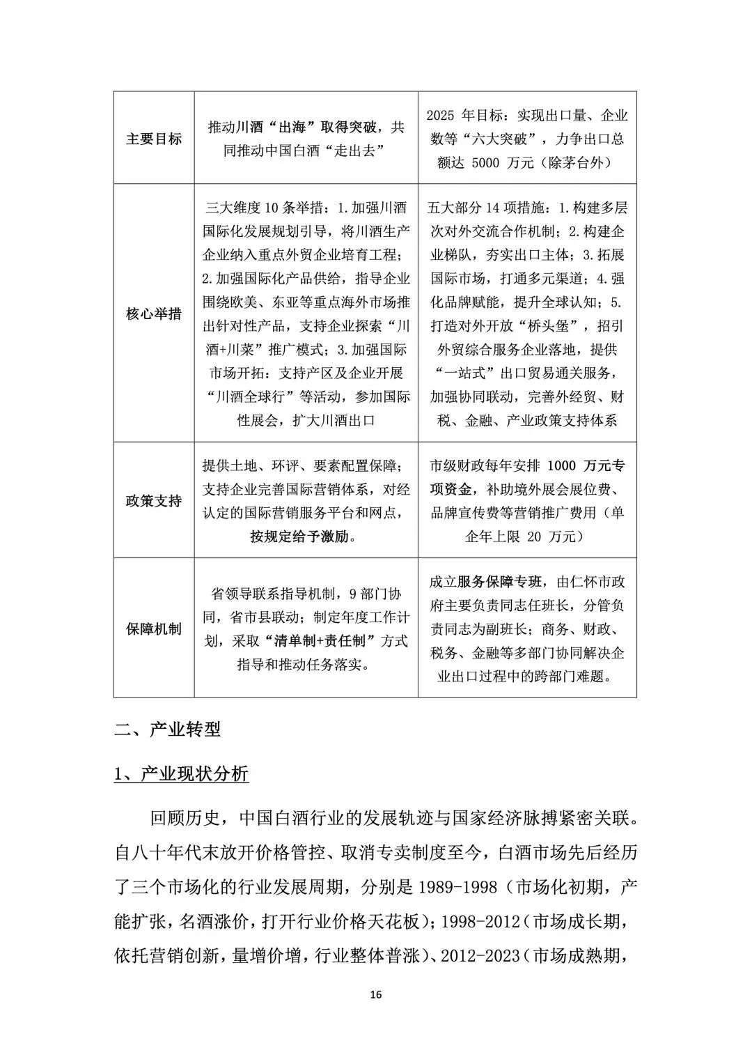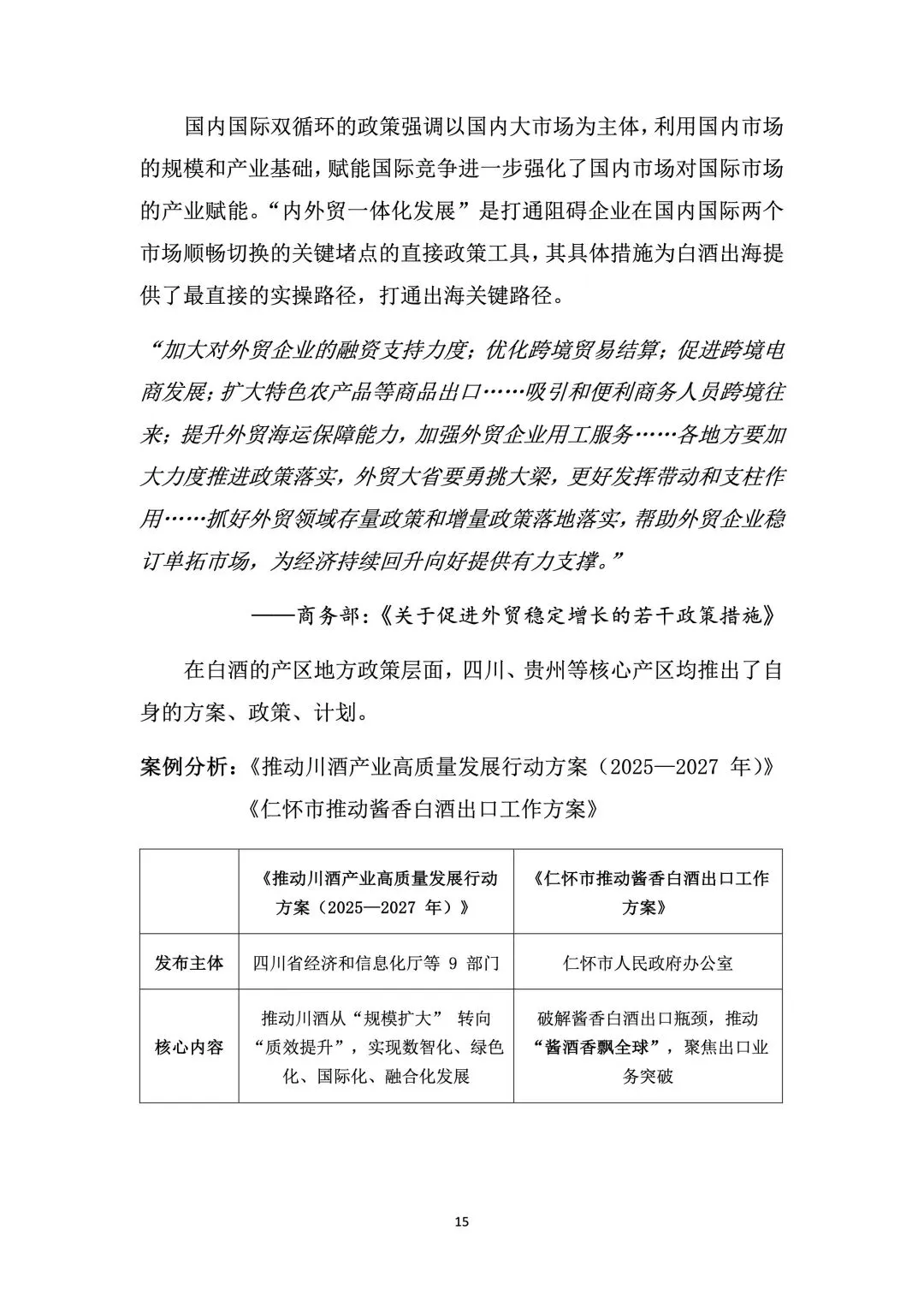 白酒国际化进入提质增效阶段,推动风味、标识、认证标准化;强化健康、社交、文化价值表达;打造国际高端品牌形象;借力一带一路与文旅复苏扩大覆盖;从产品出口转向品牌出海,逐步实现从华人市场到主流消费市场的跨越。