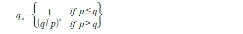 qz = 攻击者从落后 z 个区块赶上诚实链的概率