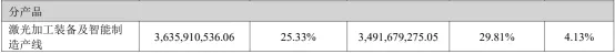 激光加工装备及智能制造产线:营收36.36亿元,同比增长4.13%,占总营收25.33%