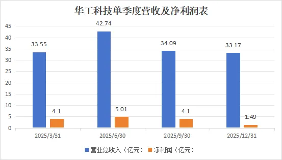 第四季度单季营收33.17亿元,环比下滑2.7%。归母净利润仅1.49亿元,环比骤降63.55%。