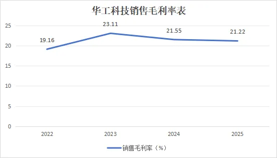 2025年公司综合毛利率为21.22%,同比下滑0.33个百分点。