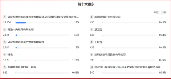 第一大股东武汉国恒科技持股19%,保持不变,显示出国资对公司发展的坚定支持。