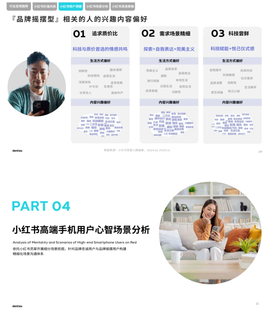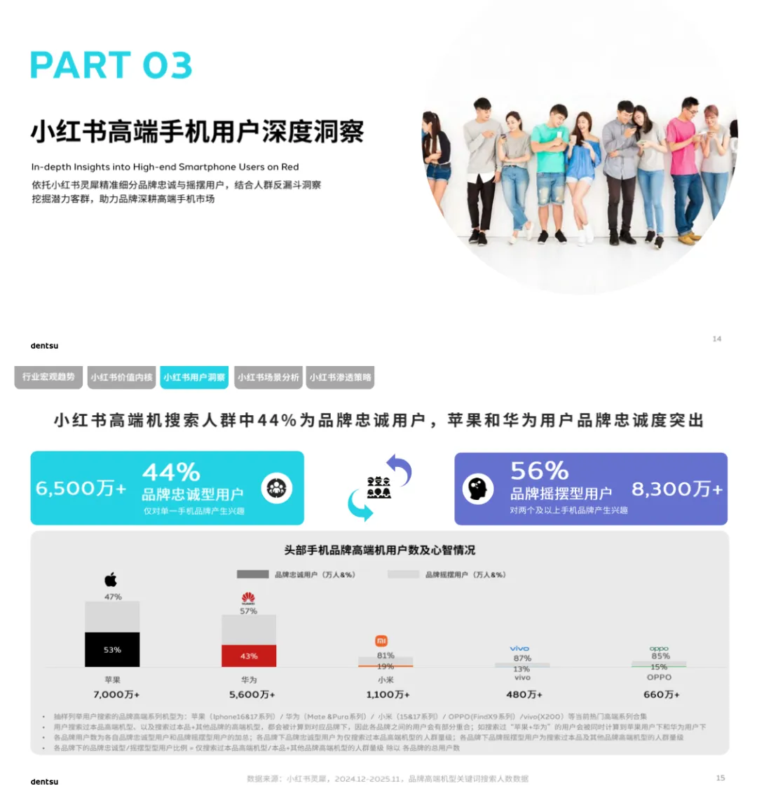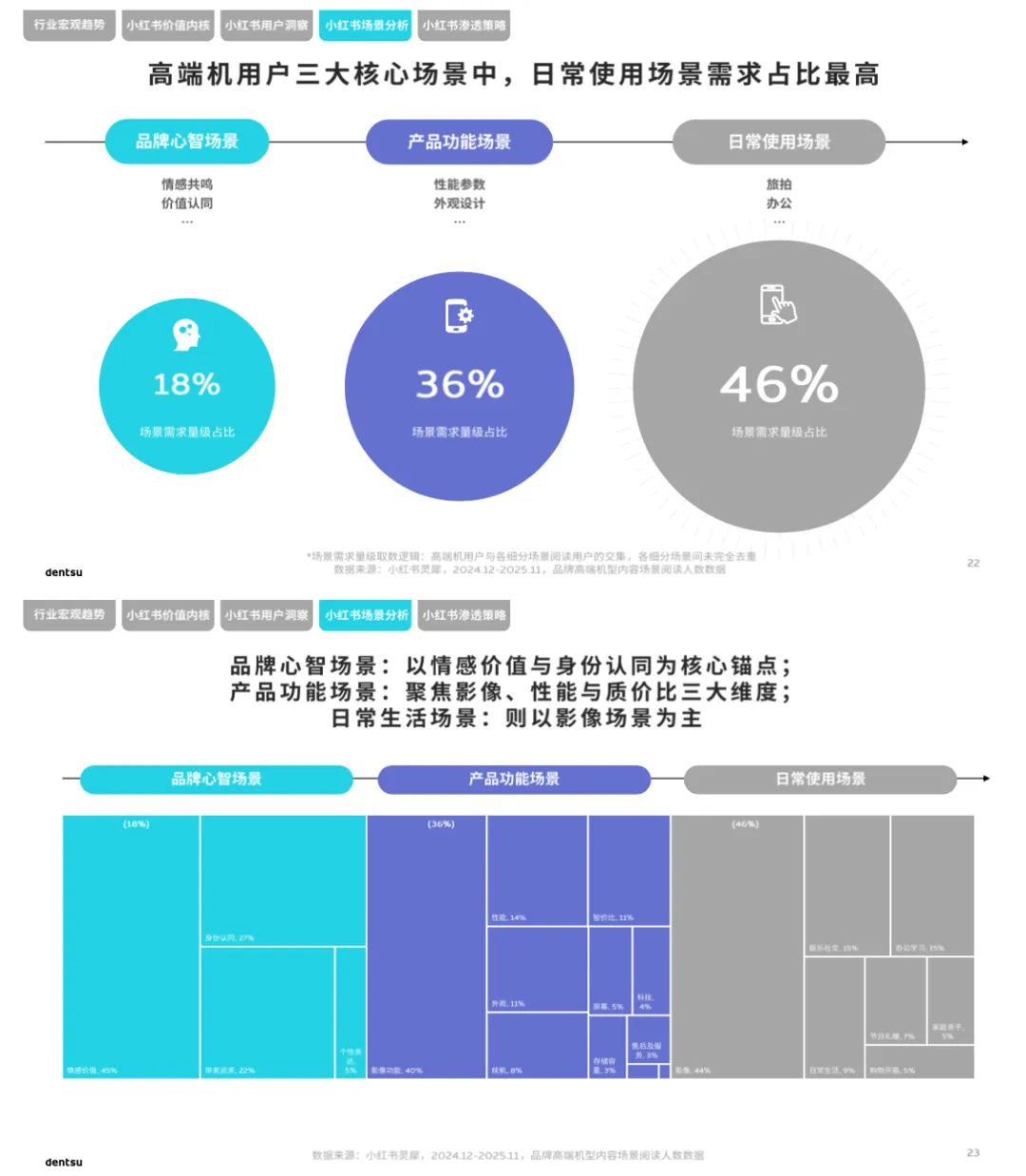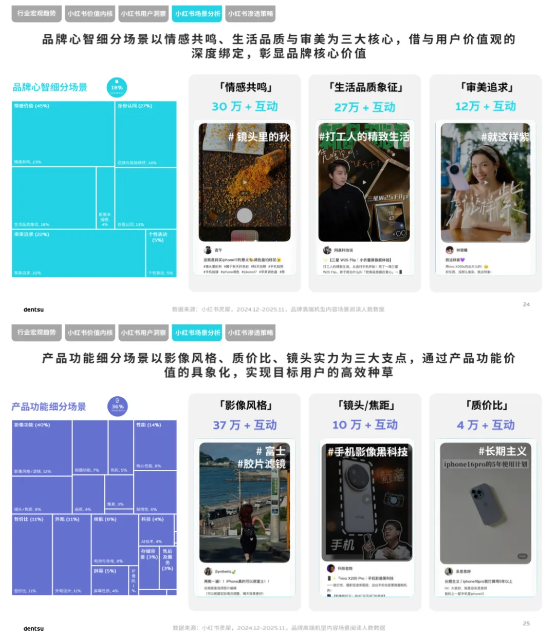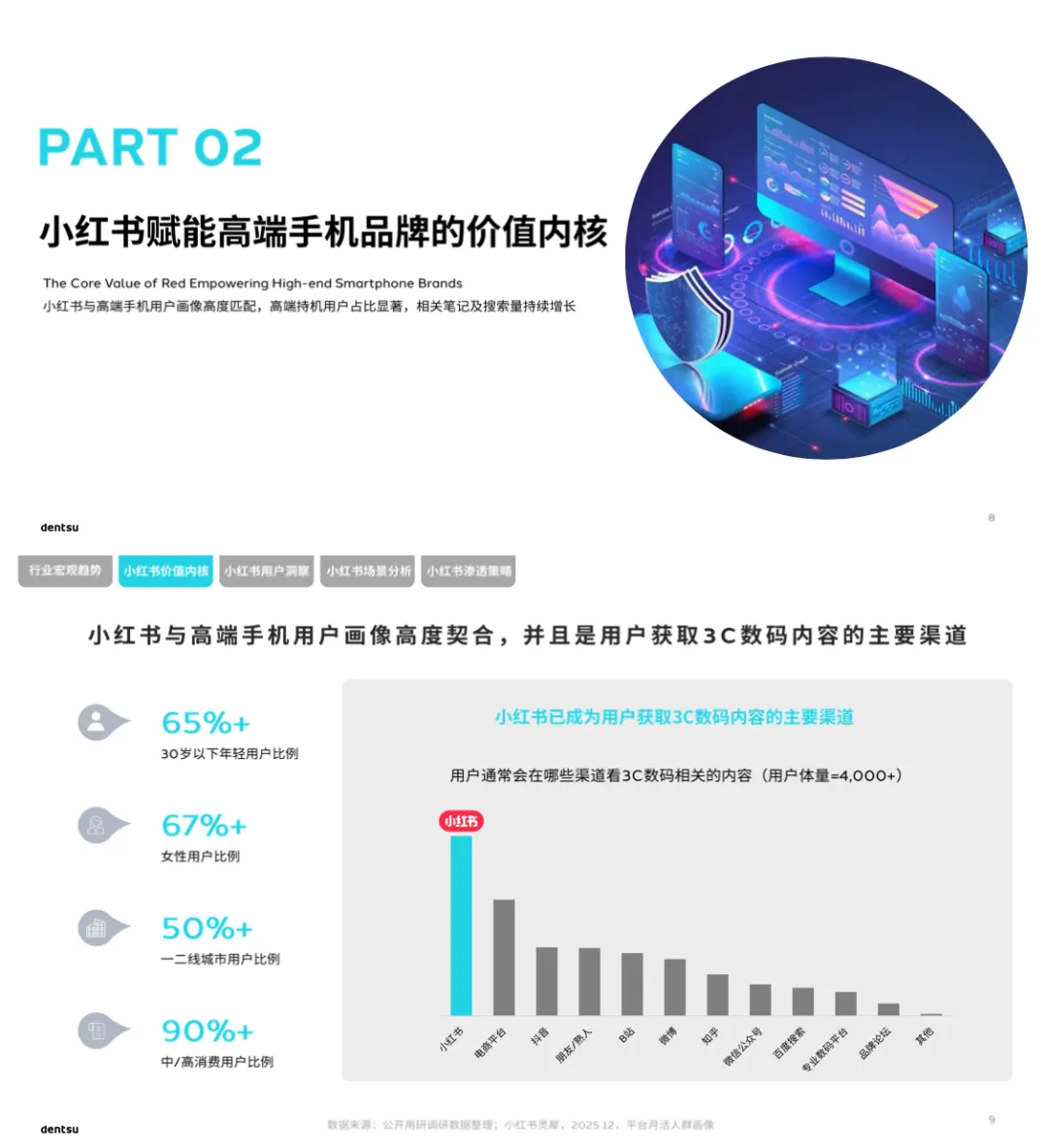 中国#智能手机 市场趋于饱和,高端机市场增速显著,头部品牌密集布局高端手机,市场竞争进入白热化。小红书与高端手机用户画像高度匹配,高端持机用户占比显著,相关笔记及搜索量持续增长。