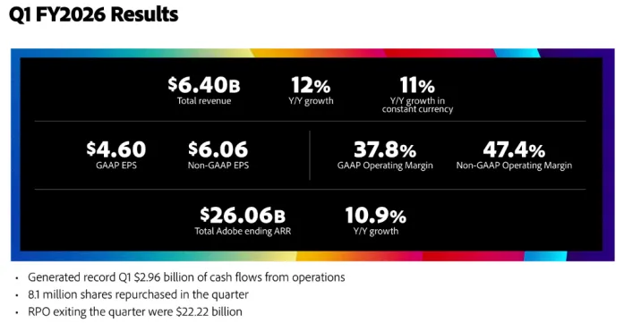 它绝不是一家正在衰退的烂公司。恰恰相反,在Adobe刚交出的2026财年Q1成绩单中,狂揽64亿美元收入,同比增长12%,全年ARR(年度经常性收入)预期稳如泰山。但在最近软件板块(IGV)的强劲反弹中,Adobe却像一个被遗忘在角落的弃子,股价持续阴跌。没有突发的黑天鹅,没有致命的管理丑闻,但市场就是对它出奇的冷酷。