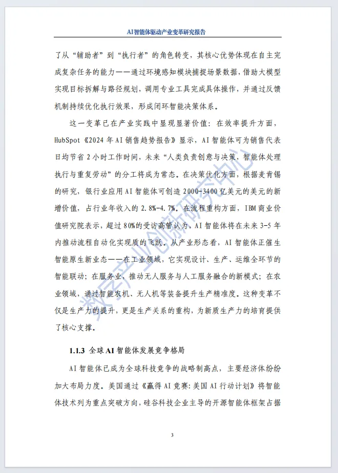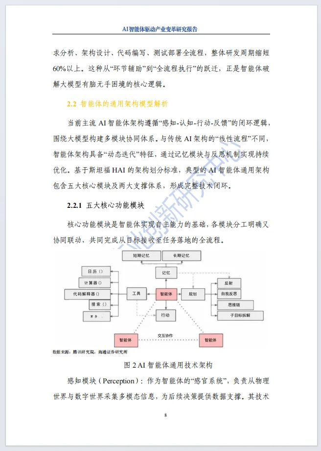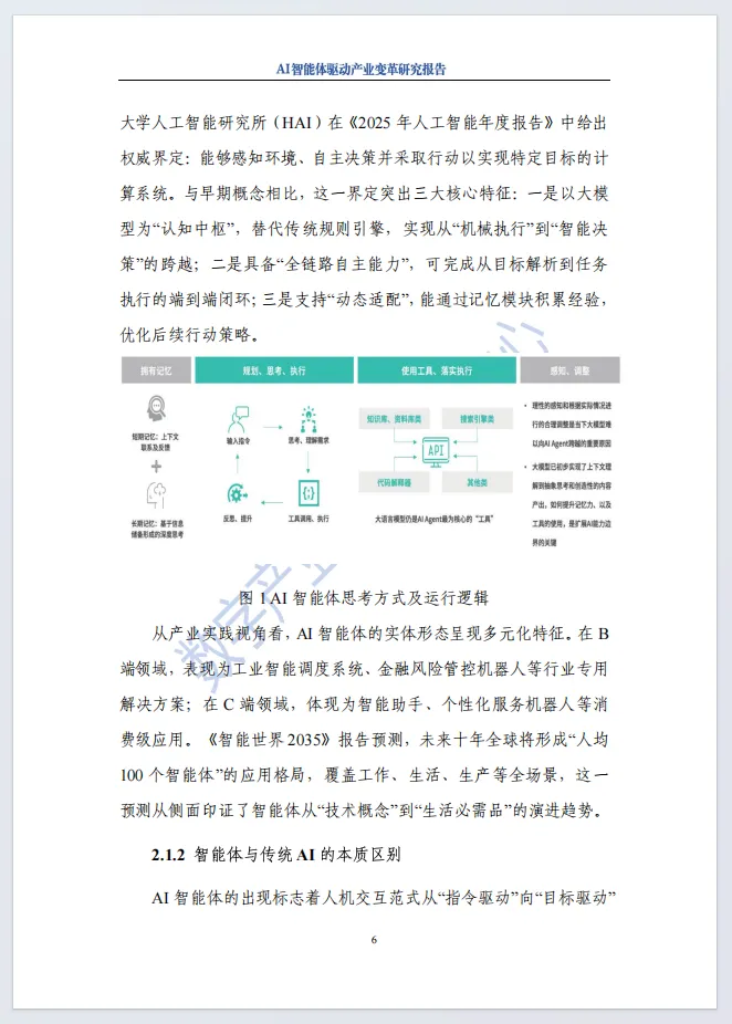《2025年AI智能体驱动产业变革研究报告》由数字产业创新研究中心、北京前沿国际人工智能研究院联合发布,系统解析AI智能体驱动产业变革的全景。报告明确AI智能体是大模型原生应用,具备自主感知、规划决策、工具调用与持续学习能力,与传统AI在自主性、全局性、进化性上有本质差异。